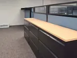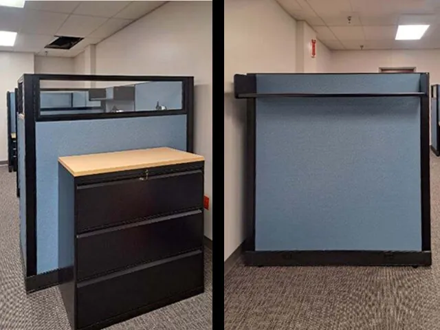 The team at Westlake Pipe & Fitting was in search of a reliable Tennessee office furniture supplier to design a functional and efficient workspace. The main goal of the project was to enhance productivity by creating an open plan office space that would accommodate multiple employees while offering ample storage and organizational solutions. Our office space planners designed the layout and installed 12 L shaped blue and black cubicles, strategically arranged to optimize workflow and collaboration. Each workstation featured a 5’ x 7’ L shaped cubicle desk, providing spacious work surfaces to the vibrant blue cubicles, creating a colorful yet professional aesthetic.