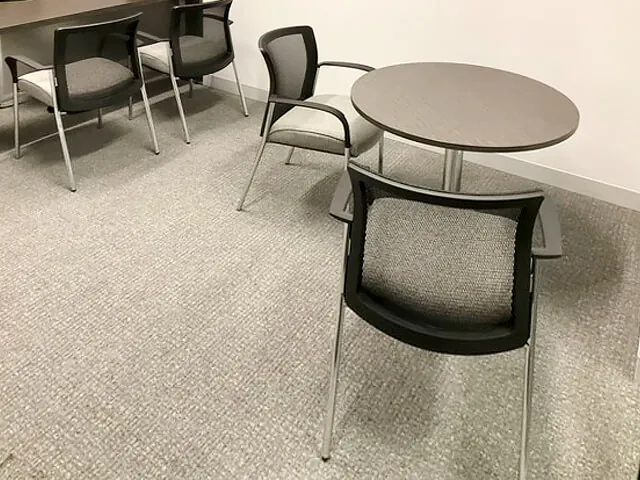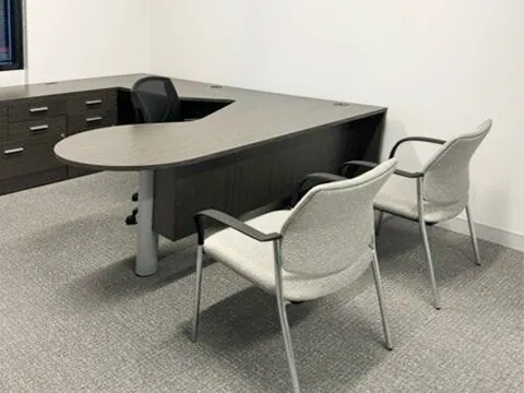 Finally, we provided office seating solutions that offer comfort and support, starting with four ergonomic task chairs paired with the cubicle workstations. Private offices #6 and #7 were furnished with mesh task chairs and four white guest chairs, while Office #8 includes a mesh back chair with arms for added comfort and four mid back chairs creating a welcoming atmosphere for visitors.