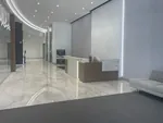 The office space design of this flexible working space, is an exuberant display of a rich combination of textures, expertly employed to provide the space with a unique sense of depth and captivating features that convey the essence of aesthetic offices. Fabric, wood, and metal finishes were combined in the furnishings of the modern office furniture sets that outfit each area of this chic office space in Florida.