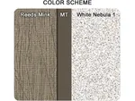 For simple, understated neutral office colors we went with cream cubicle panels, white desk tops and dark grey paint for the trim, office power pole, and metal filing drawers.