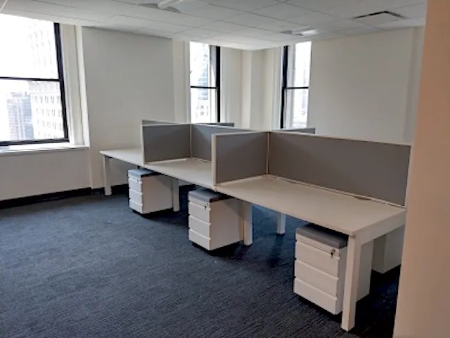 We specified Xpand™ open office benching desks to create cluster workstations of 6-person and 4-person desks throughout the space, perpendicular to the office walls. Electrical & data cabling routes from the building’s walls through channels that run under the center of each bench desking unit for convenient access.