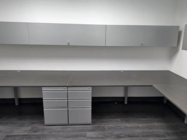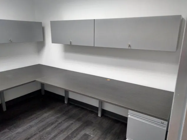 The team of 2 employees needed an extra deep desk top for spreading out large plans, and plenty of office storage cabinets to handle the high volumes of plans, documents, and files.