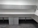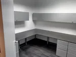 With no space to waste in this small office space, the office layout planning needed to be clever and precise. Our office designer utilized every inch the office square footage available by taking a built-in office furniture approach with wall mounted desk with drawers and wall mounted storage cabinets.