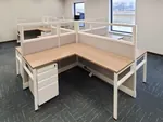 Our client acquired an additional four pairs of L shaped workstation desks with similar characteristics to the ones described above, in clusters of 2, to be placed along the perimeter wall of the open office area.