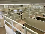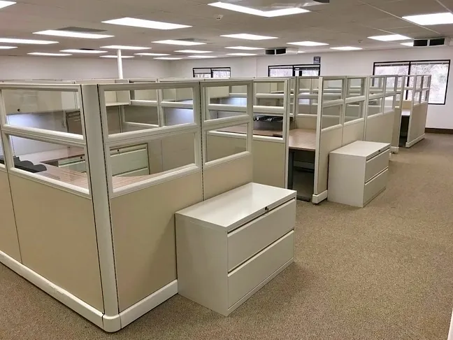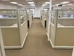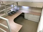 Each worker has a large 8’x10’ U-shaped workstation packed full of office storage components to help manage their client files. We gave them under desk filing cabinets, 2 drawer lateral file cabinets, office cubicles shelves, locking storage bins, and hanging paper organizers.