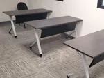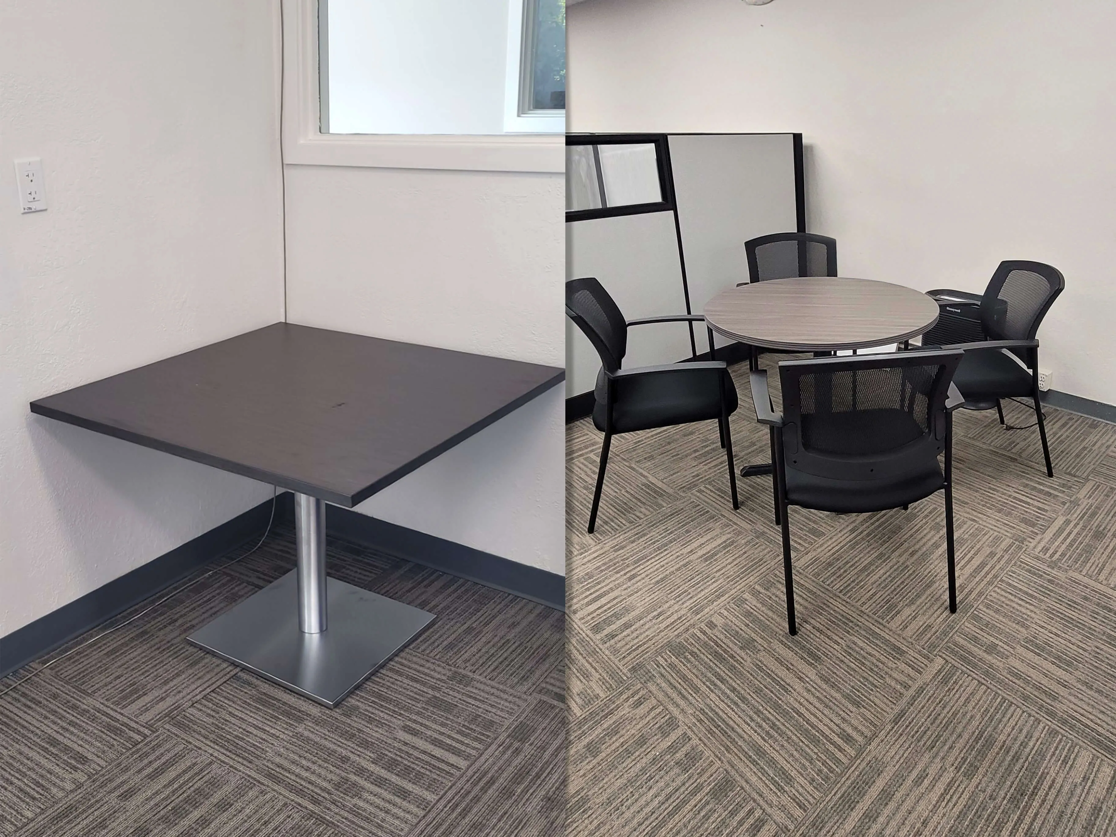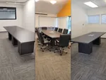 We furnished four conference rooms each with a carefully curated business meeting table setup. The first large boardroom, was equipped with a conference table for 12, while the second mid-sized meeting space featured a boat-shaped 12 person conference table with a conference table with power box for seamless connectivity. The third mid-sized conference room was designed for ten participants, incorporating a 10 person conference table with power and data capabilities. Lastly, a smaller meeting room was furnished with a rectangular meeting table, perfect for more intimate discussions.