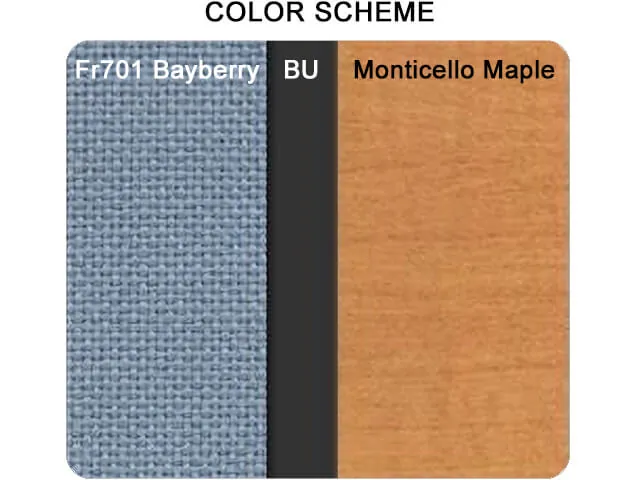 Finally, bold, dark grey wood finishes were once again used in the two executive corner suites, featuring in the sleek large L shaped office desks with white modesty panels for desks, as well as in the sizeable glass door office storage credenza units. The company’s corporate color was once again introduced in the form of bright blue executive office chairs and matching black guest chairs.