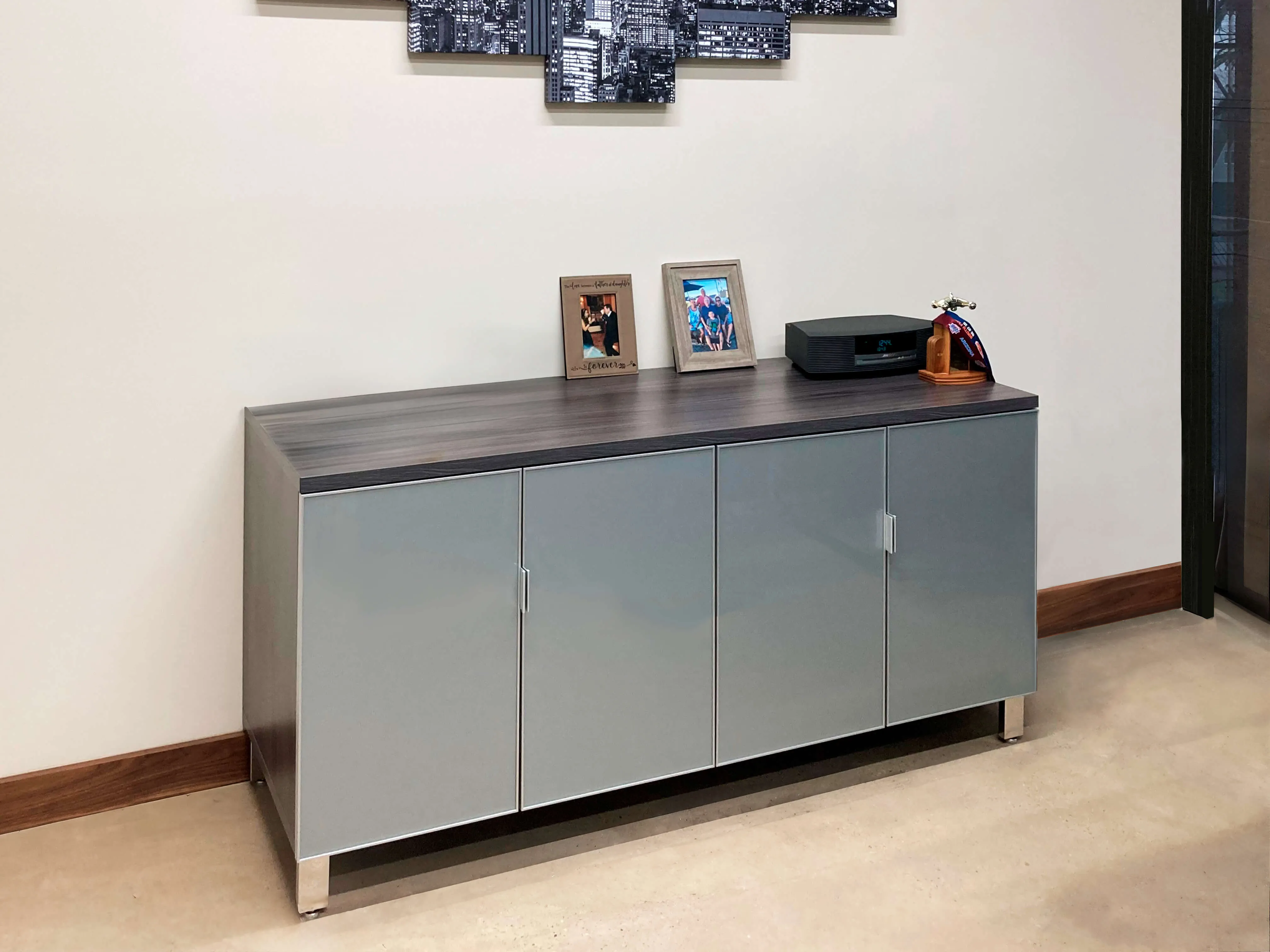 For their office space in New Jersey, this return client envisioned having modern high end furniture to denote their highly professional office work environment.