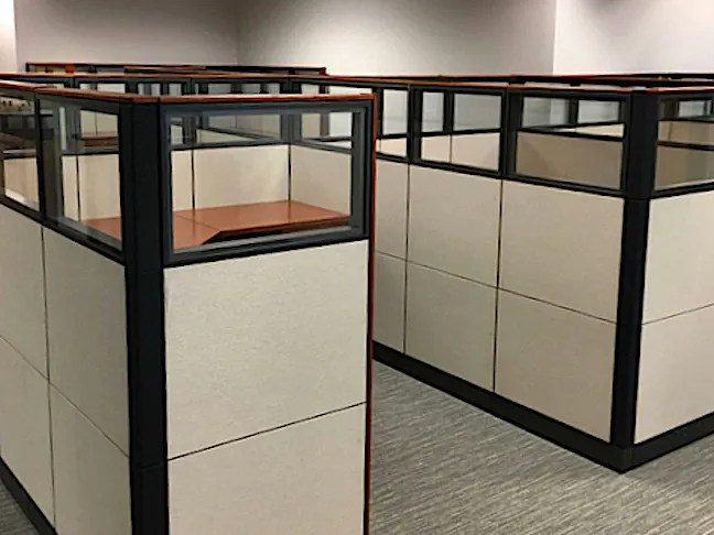 We sold the client used office furniture in San Antonio consisting of 12 large cubicles manufactured by Knoll Reff. These wooden cubicles are wrapped with a panel system that uses a tiled frame – a cubicle design originally made popular by Herman Miller Ethospace.
