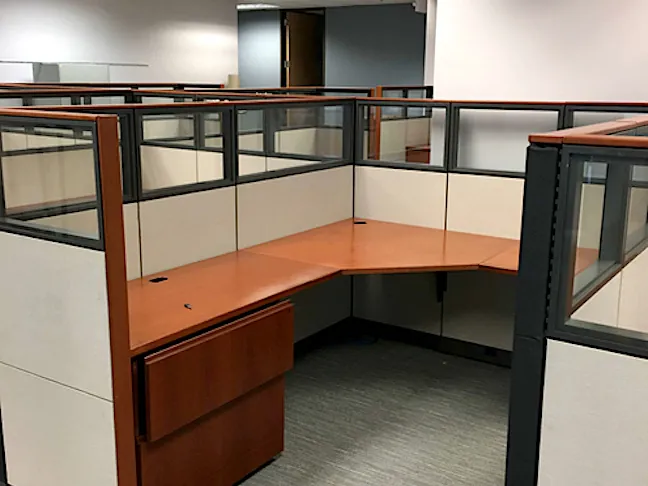 The client was pleased with the professional charm that their “new to them” wood office cubicles contributed to their Texas office space.
