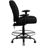 These chairs for big and tall are covered with black fabric upholstery and come with padded seat, chrome foot ring and black metal base.