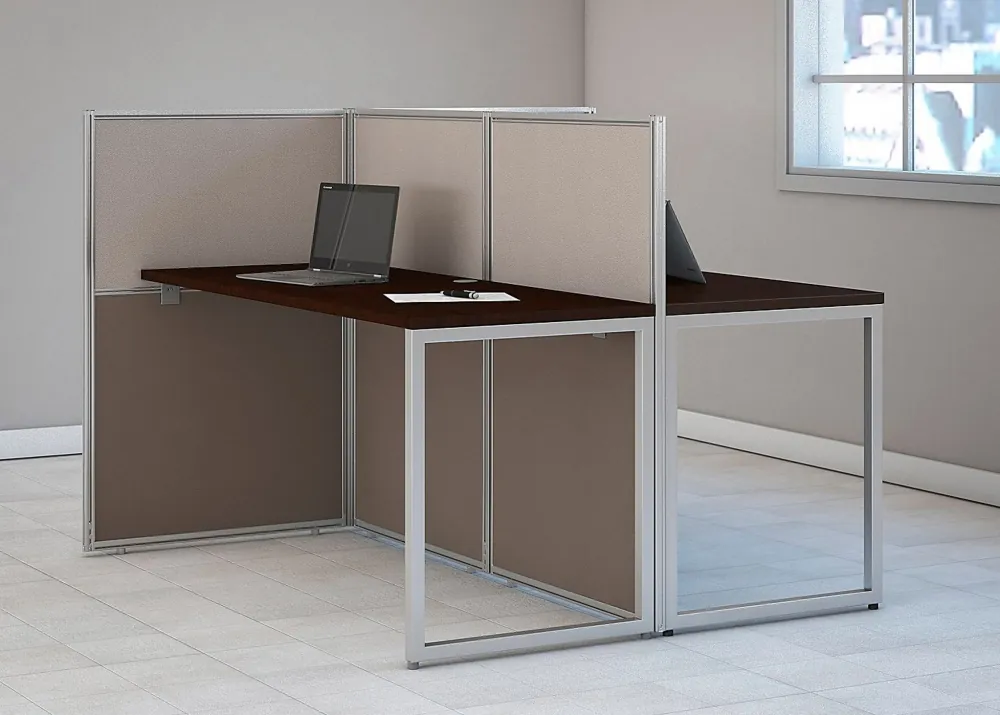 This simple, clean and stylish corporate office furniture will impress you right from the start. Most of the time commercial grade business furniture can be quite expensive with long wait times and complicated parts that require professional installers. But not EZ Office! The In-Stock straight desk for two ships quickly and assembles easily, so you can start working in no time. The desktops are are divided by 45"H panels that provide division without preventing interaction.