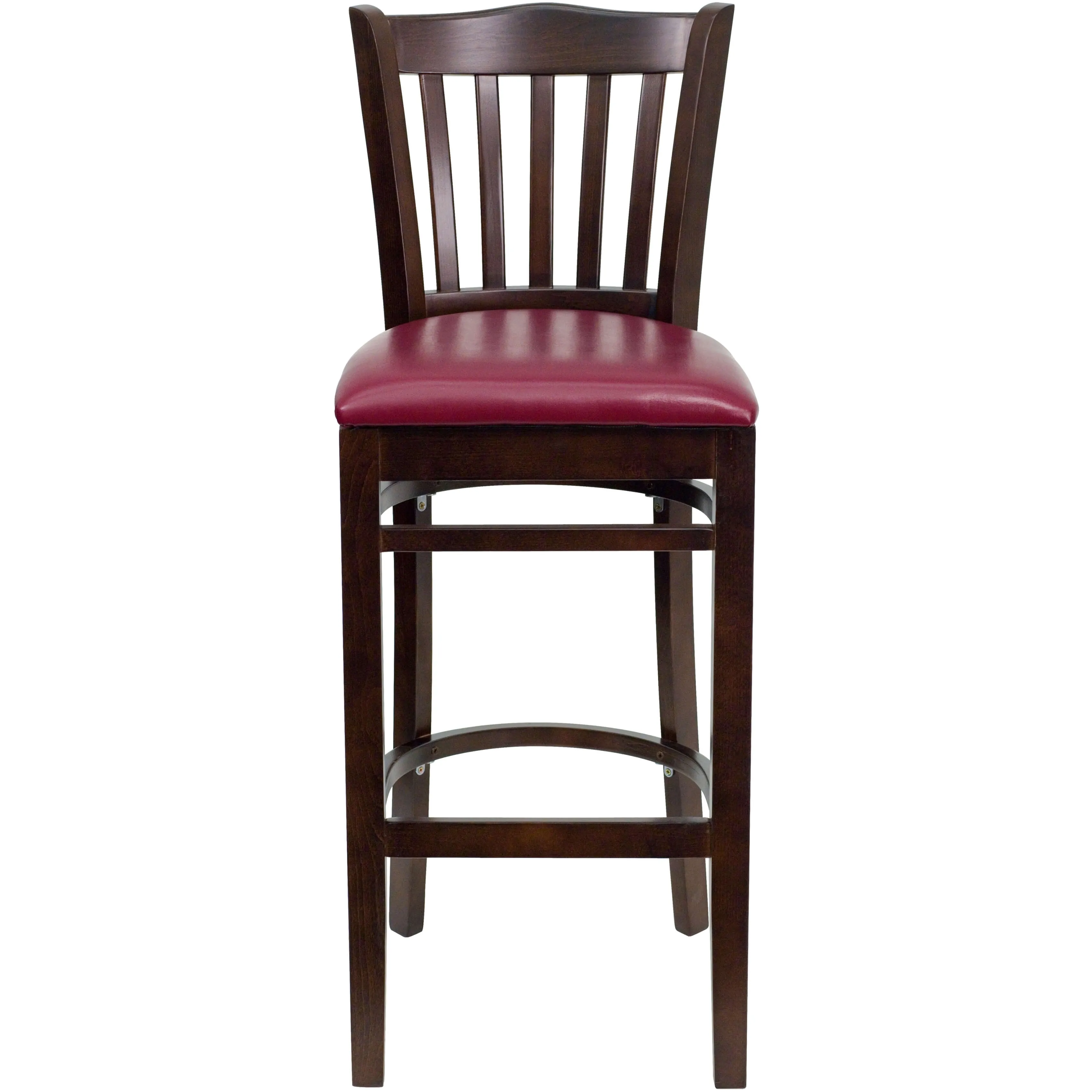 It doesn't get any more traditional than "Titus'' wooden bar chairs for your public or home bar. Add a warm, classy vintage look to your entertaining space with these great restaurant bar stools and make your visitors feel welcome. Added comfort details include a padded seat, full surround footrests, and a supportive slat back. Sit down and stay awhile!