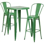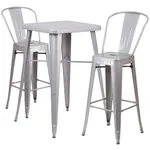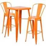 This high top table set includes chairs and a table fully constructed from galvanized steel. The set is available in seven colors: Black, Blue, Green, Orange, Red, Silver and Yellow.