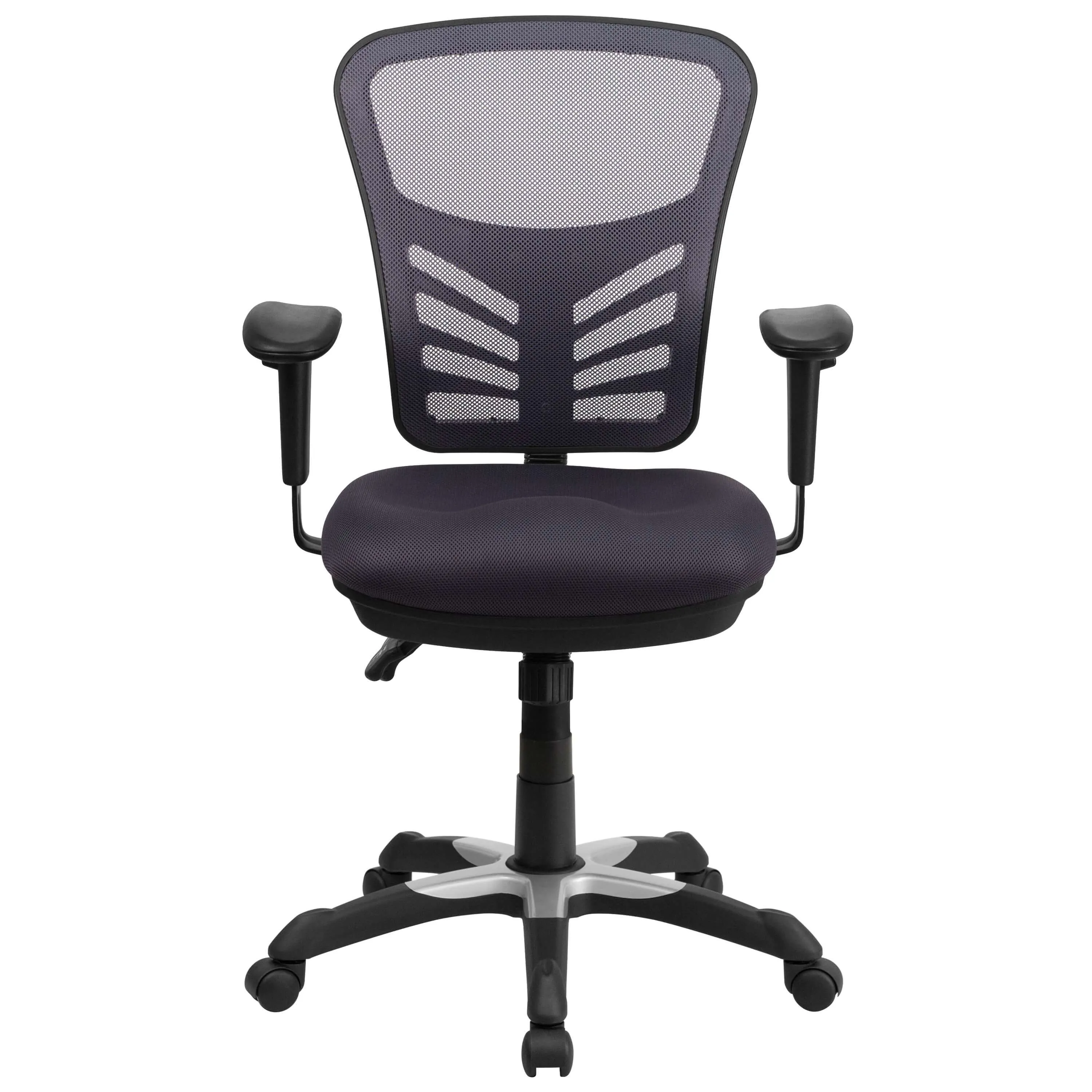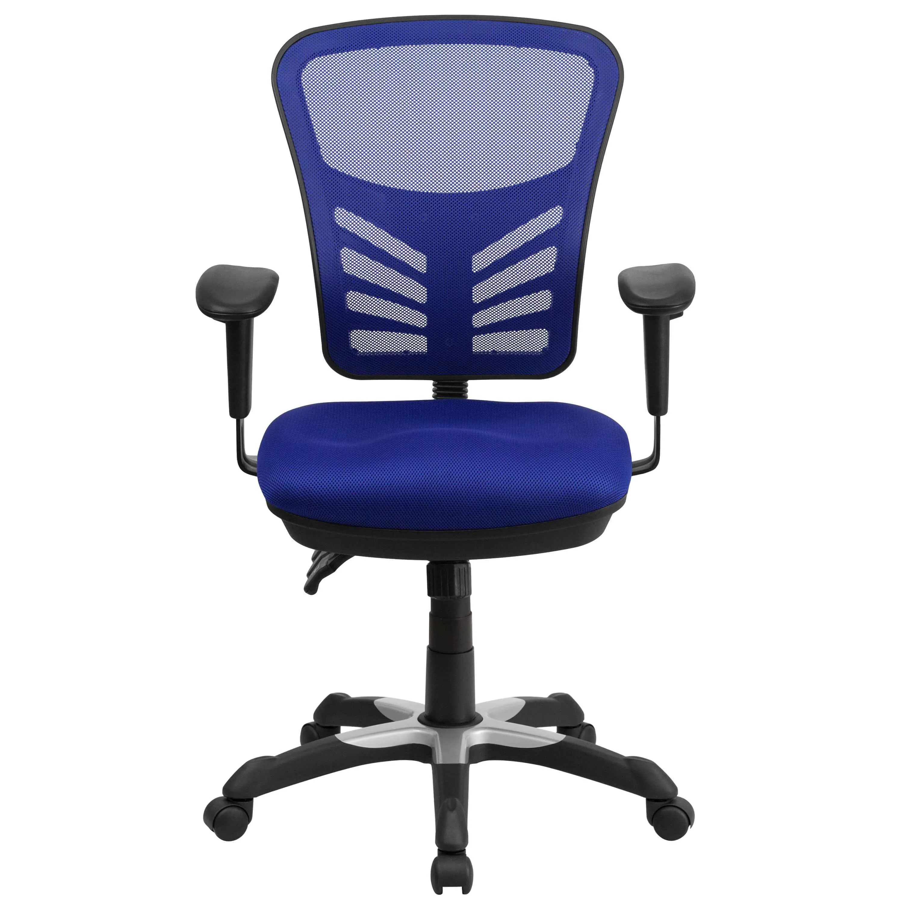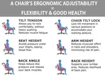Adjustable ergonomic chair features that can encourage health and wellness in the workplace: Built-In Lumbar Support, Triple Paddle Control Mechanism, Back Height Adjustment (Back Adjusts 2'' up and down), Infinite-Locking Back Angle Adjustment, Multi-Tilt Lock Mechanism, Tilt Tension Adjustment Knob, Swivel Seat, Pneumatic Seat Height Adjustment, Height Adjustable Padded Arms - making this a very comfortable ergonomic mesh office chair.