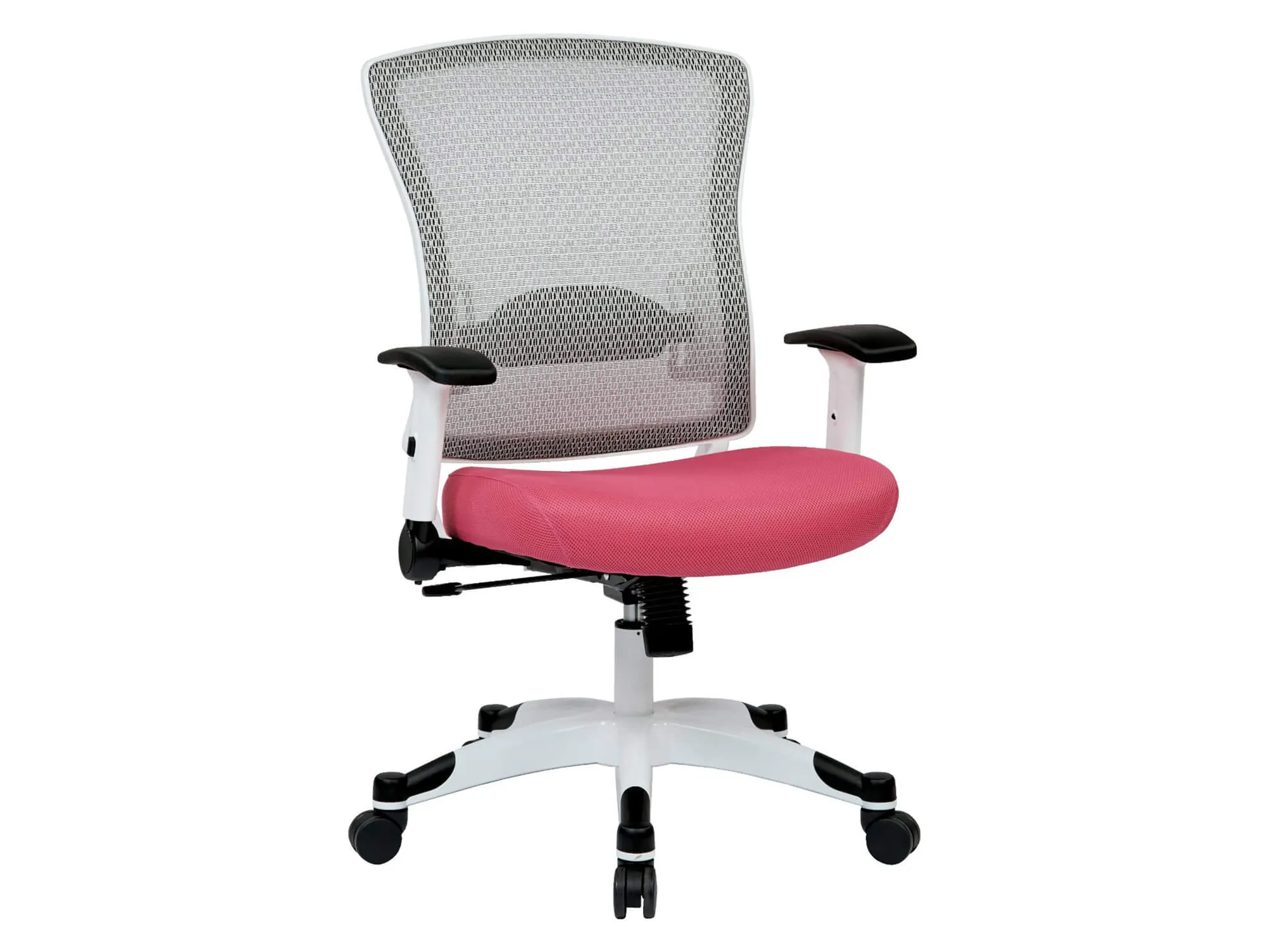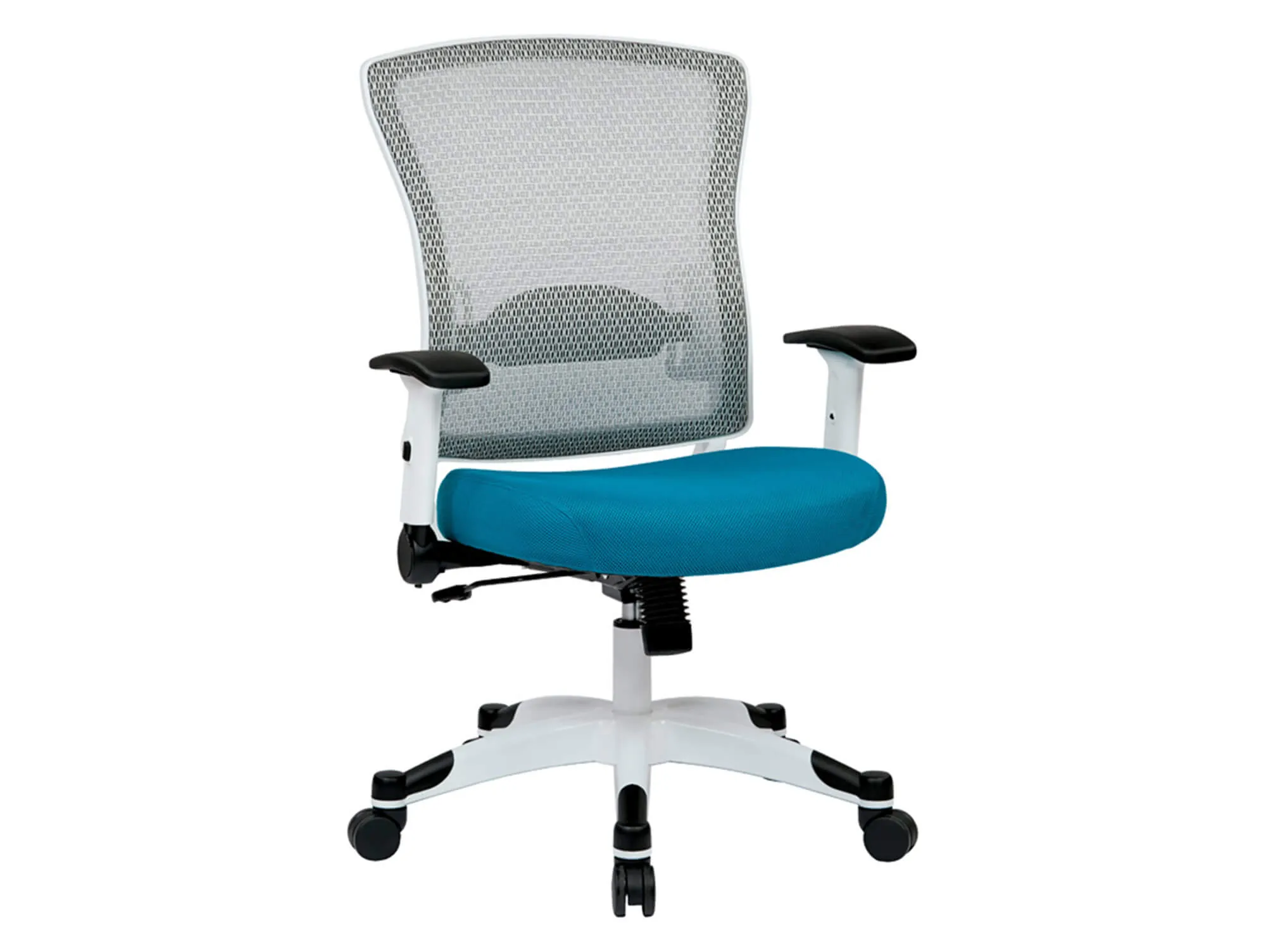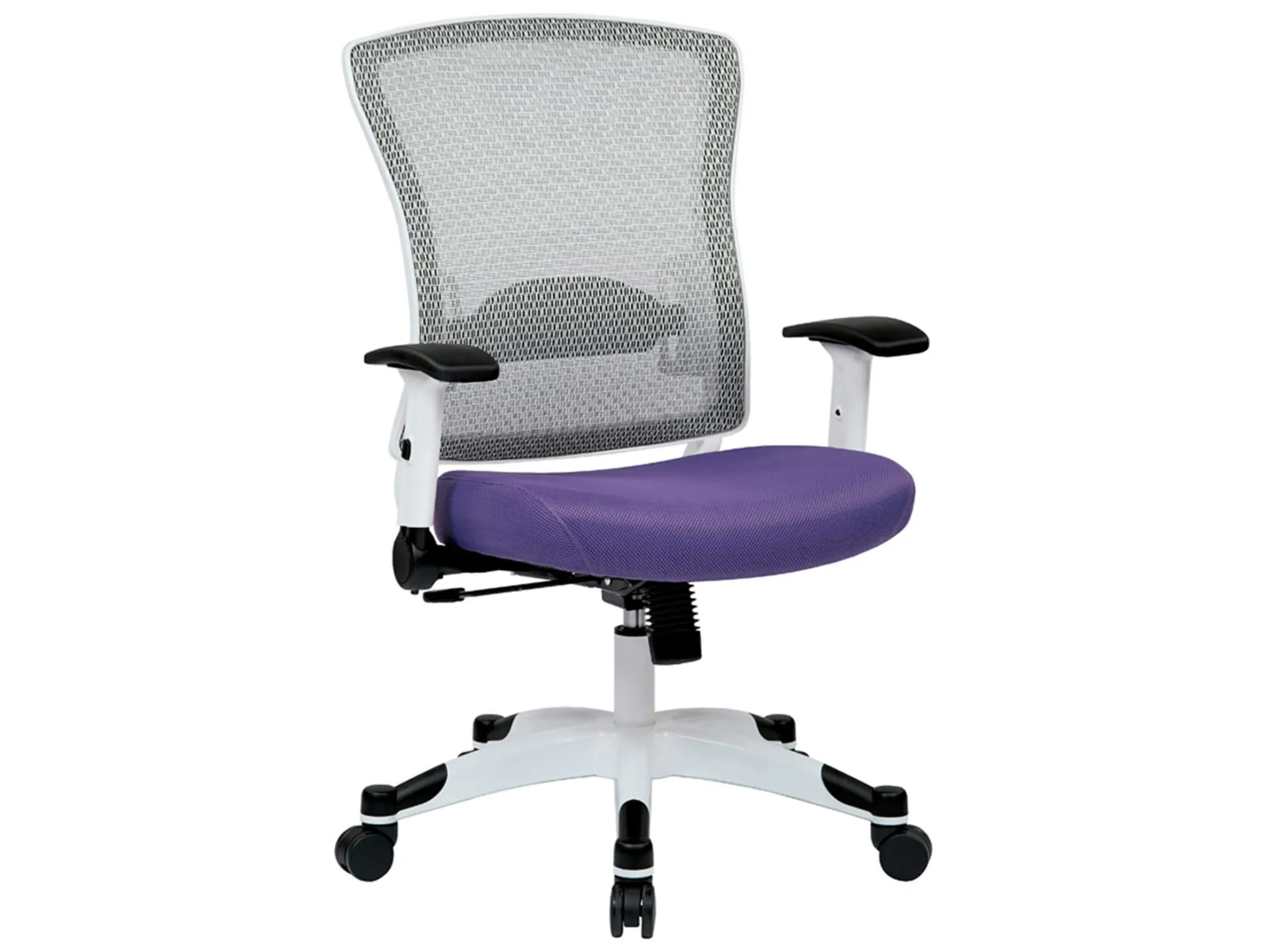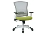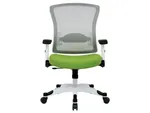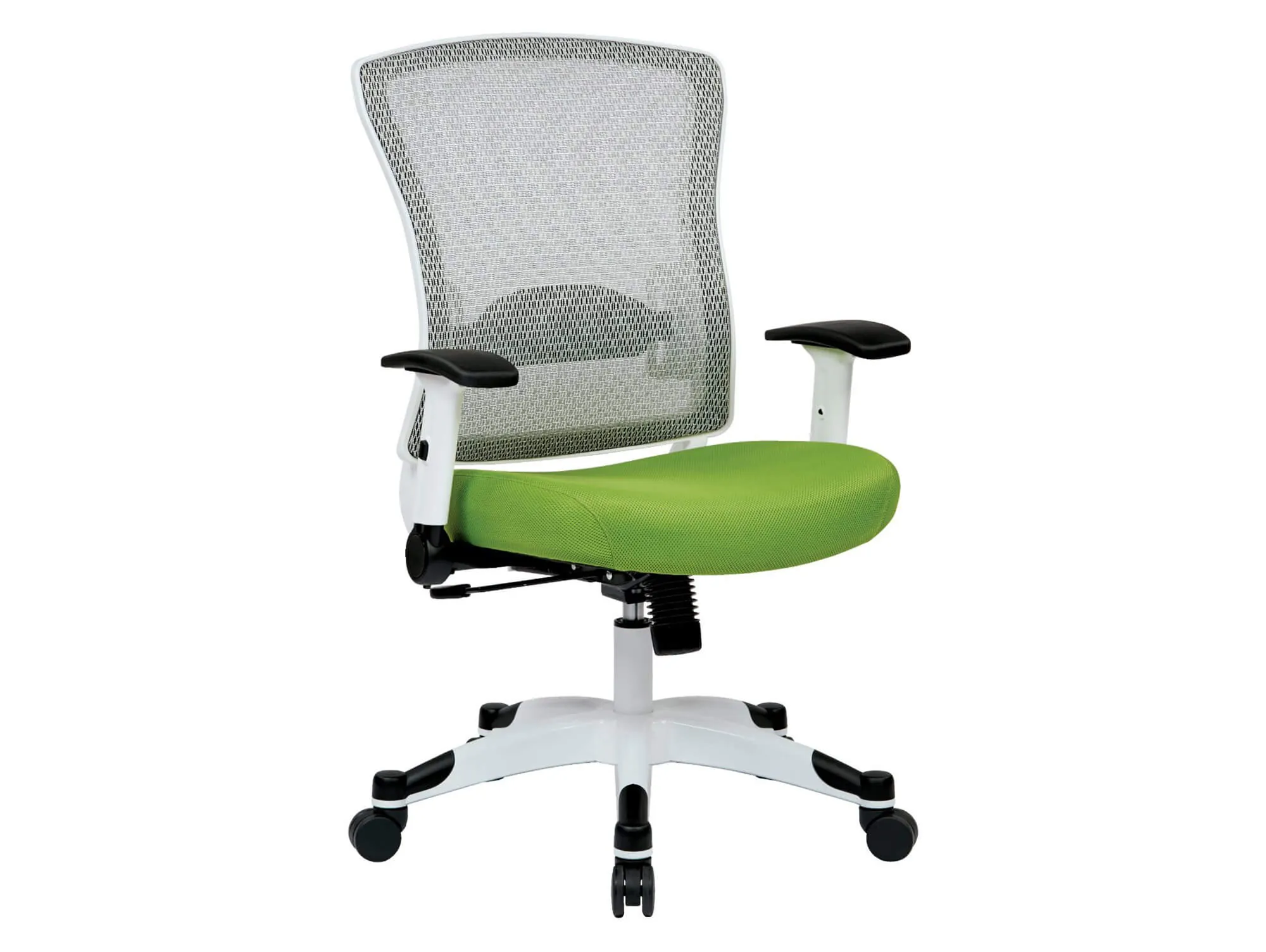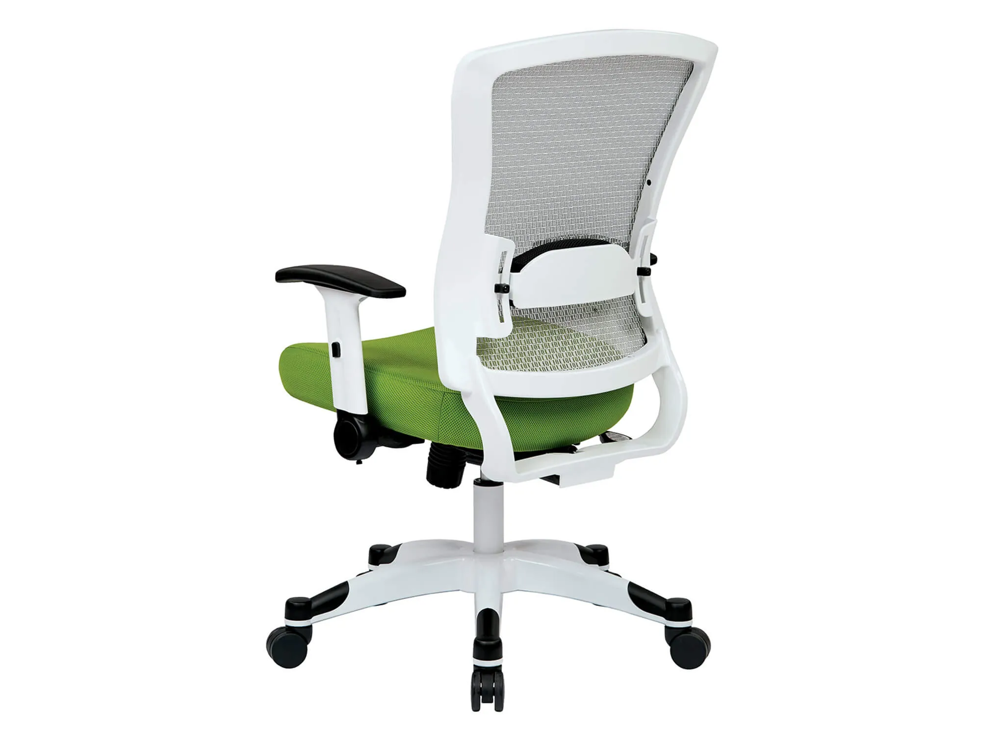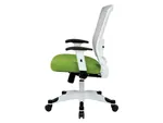 Office task chairs don't have to be boring! This Space Bolton chair proves that you can be functional and fun at the same time. Featured here as a green office chair, you can customize the thick padded seat with 12 brightly colored mesh fabric options, all in stock. The frame itself is white, with a white mesh back, and black accents and hardware pieces. This chair also features "Flip Up" arms that rotate backwards and out of your way when you need more elbow room.
