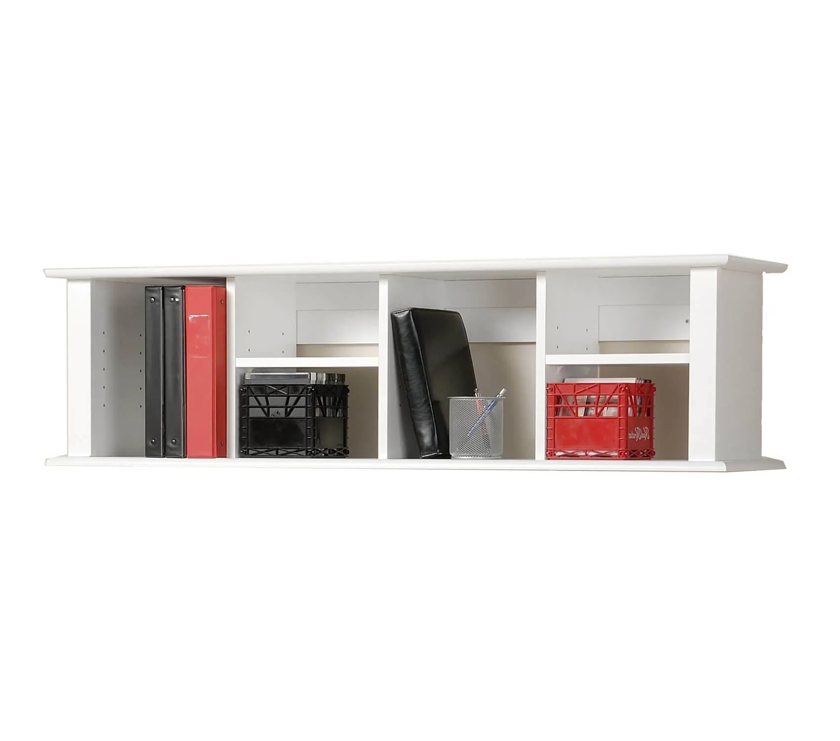 Introduce a sleek, modern look into your home office, living room or any other space, with this wall shelf desk. The convenient storage hutch is very easy to install at any height, and the display top can double as a small laptop work space or writing surface. Install it wherever you eye desires to find happiness in seeing your work or study notebooks, task lists, books or tchotchkes.