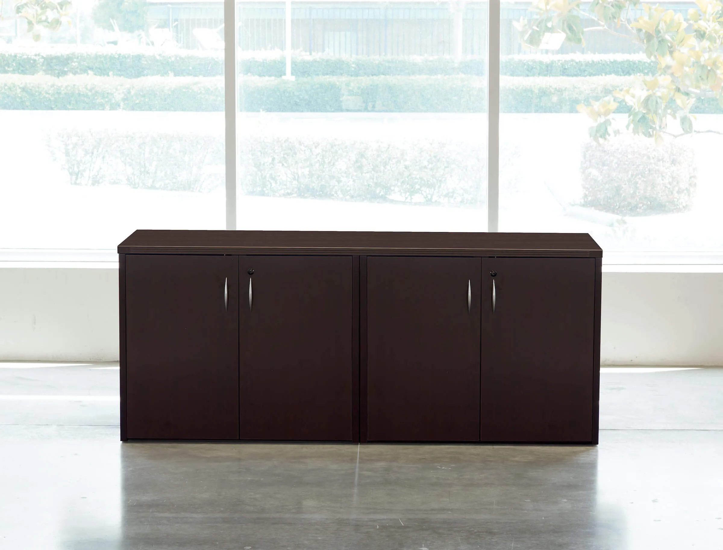 This storage cabinet with doors is avilable in 6 color options: Espresso tone with metallic hardware pulls; and in Cherry, Mahogany, Slate Grey, Urban Walnut and White with black hardware pulls.