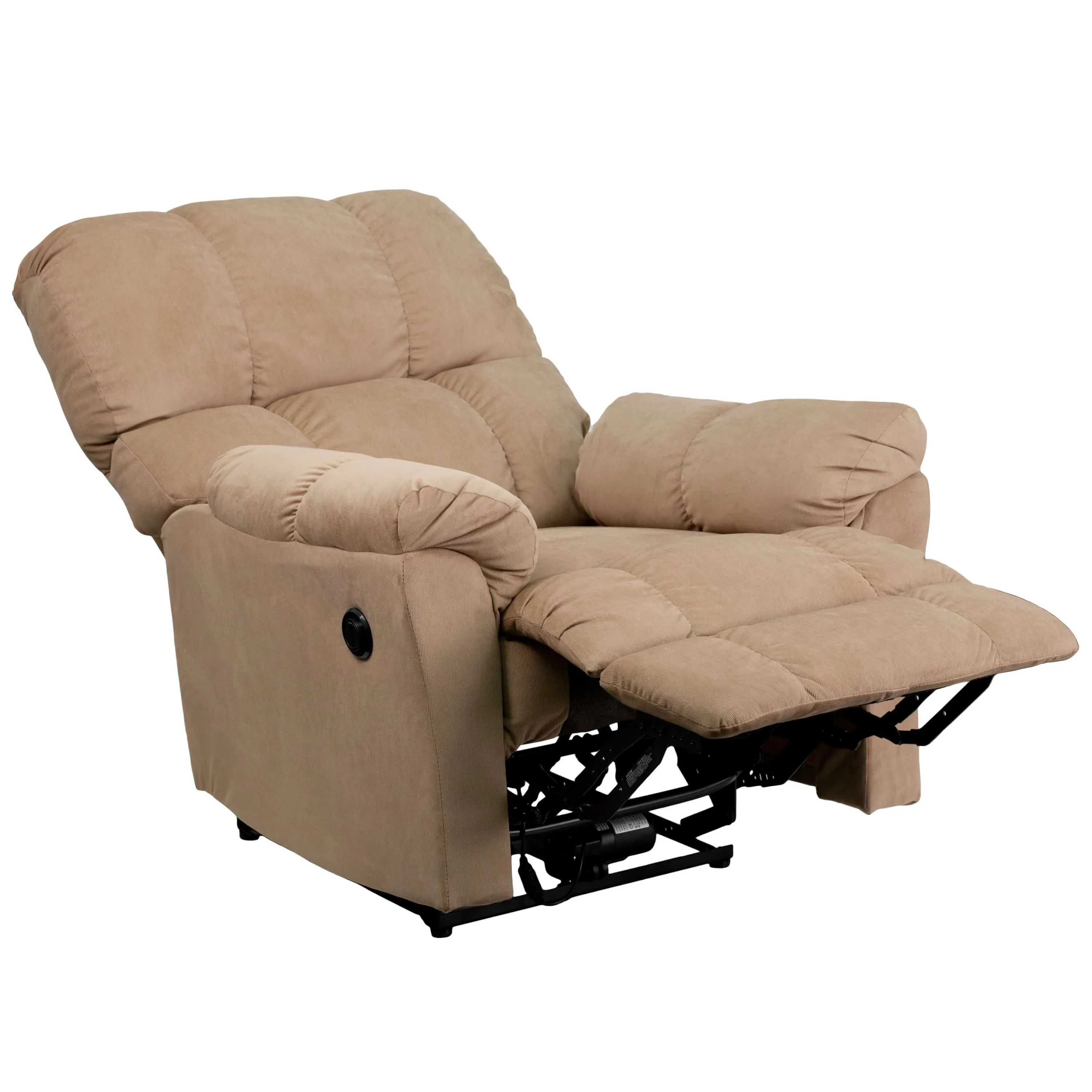 This is a push button recline with plush pillow back and infinite reclining positions. Motor has a 6 second cycle time and 2 amp cut-off and is made by Kaidie Electrical. Leggett and Platt Subsidiary.