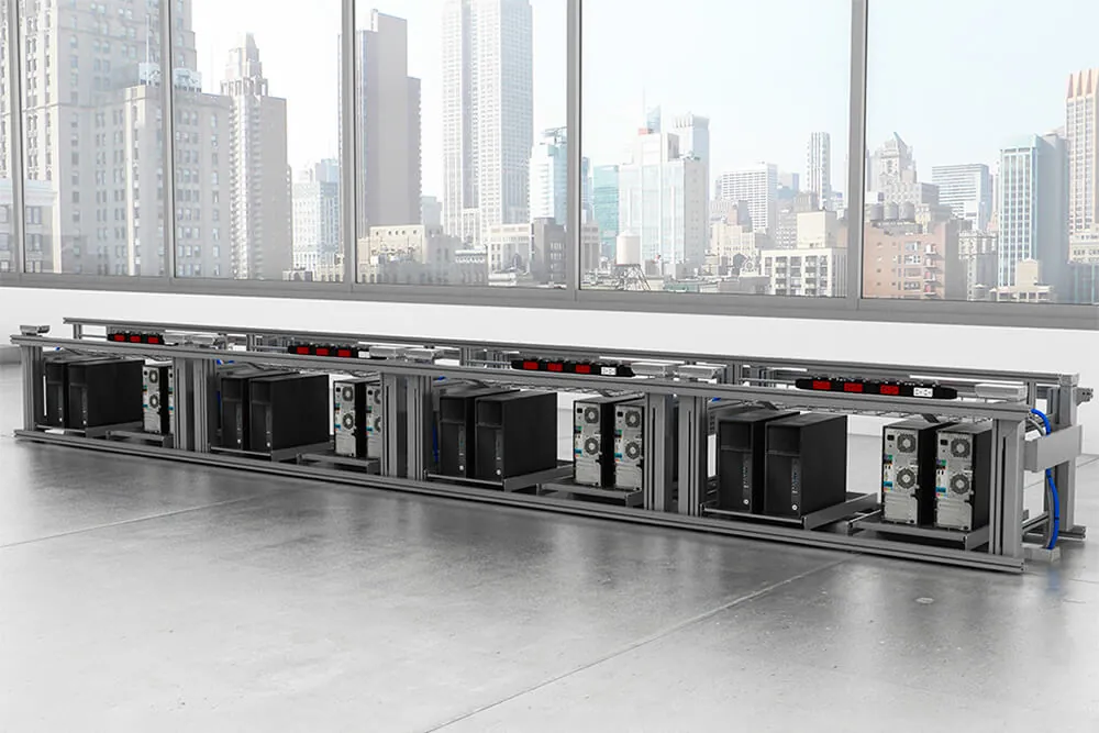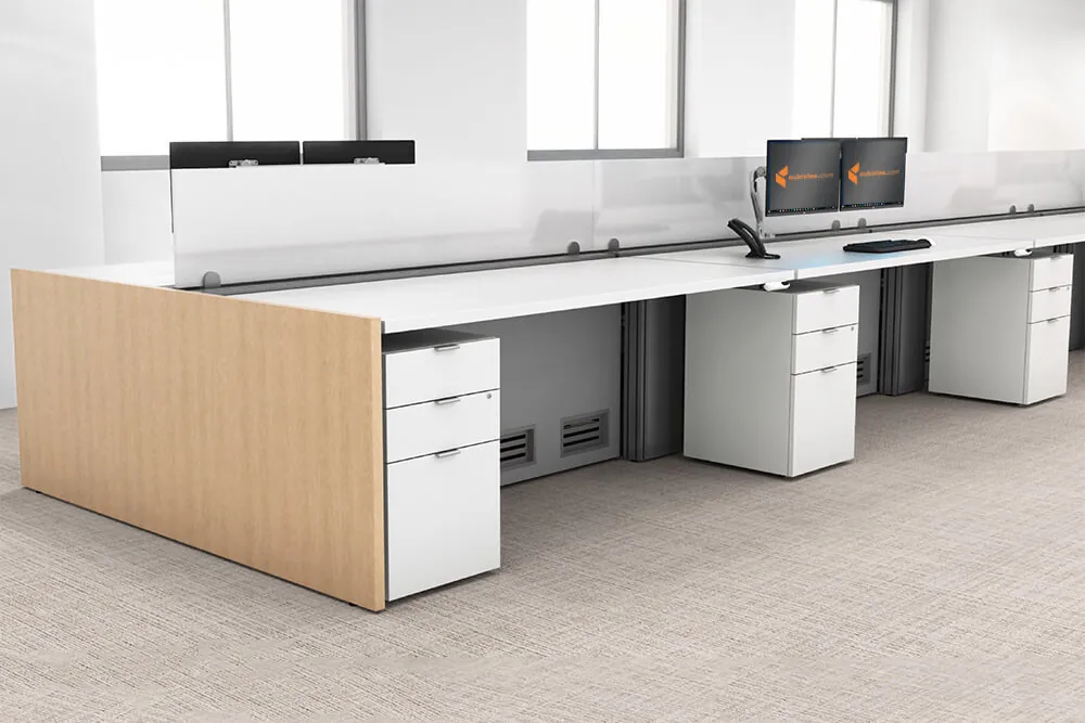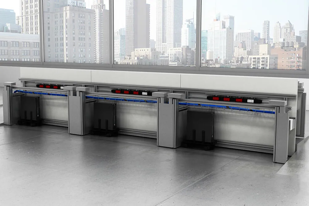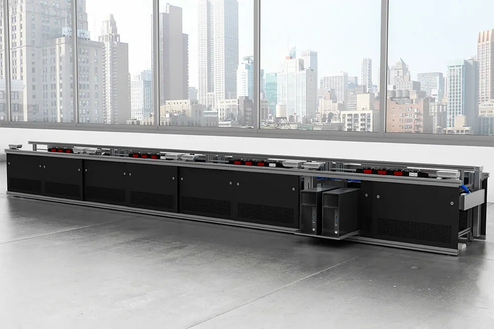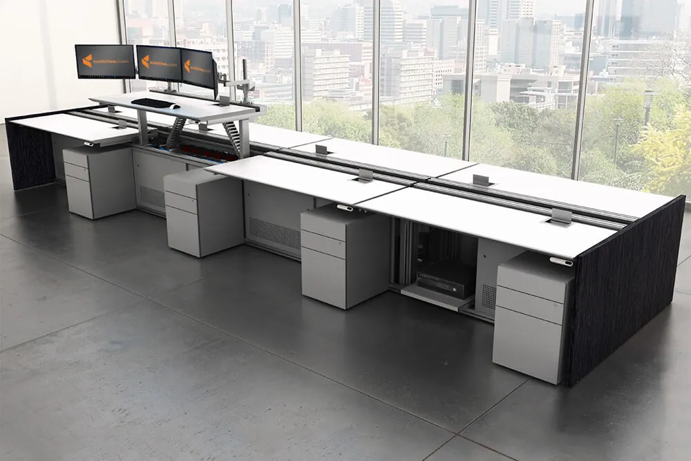 This elegant control room desk can be used as a single module or in continuous configurations. Desk units are delivered factory assembled lowering installation time and cost. From community touchdown stations, through collaborative workspaces to high density technology and trading clusters; all interchangeable on the fly without dismantling or disconnecting existing raceway core, power or data.