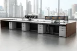 A simple solution for clean and comprehensive office layout, SeamA command consoles bring a sleek, modular and minimalist design to your control room. Designed to hold ample electrical and networking equipment; while keeping a simple look of an open plan desking system, it is a solid sturdy solution for those who like their command room or control room to have more traditional office design.