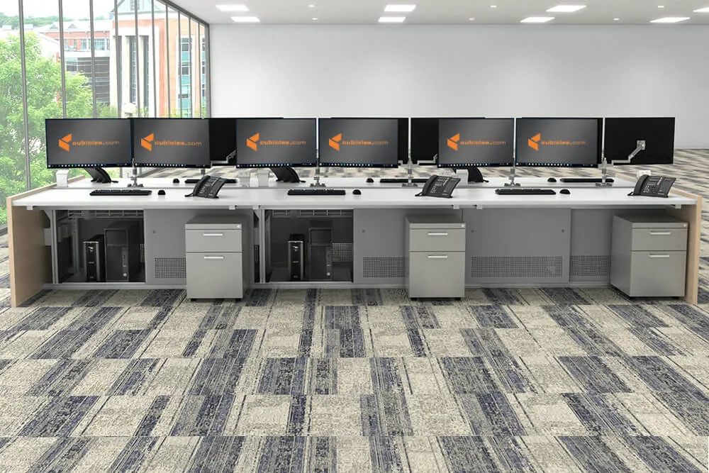 Power, data & IT accommodations tailored within a robust standalone modular core of SeamA control room desk promotes ease of use and enhanced user comfort and versatility. Its user ergonomics, logistics and technology combined by design make this control room console capable of meeting the rigorous demands of emergency operation centers, this line of control room furniture is expertly crafted to provide all the features required for 7x24 network operations centers, control rooms, and command console applications.