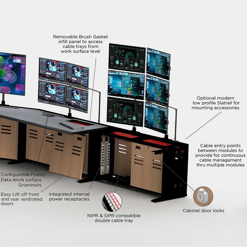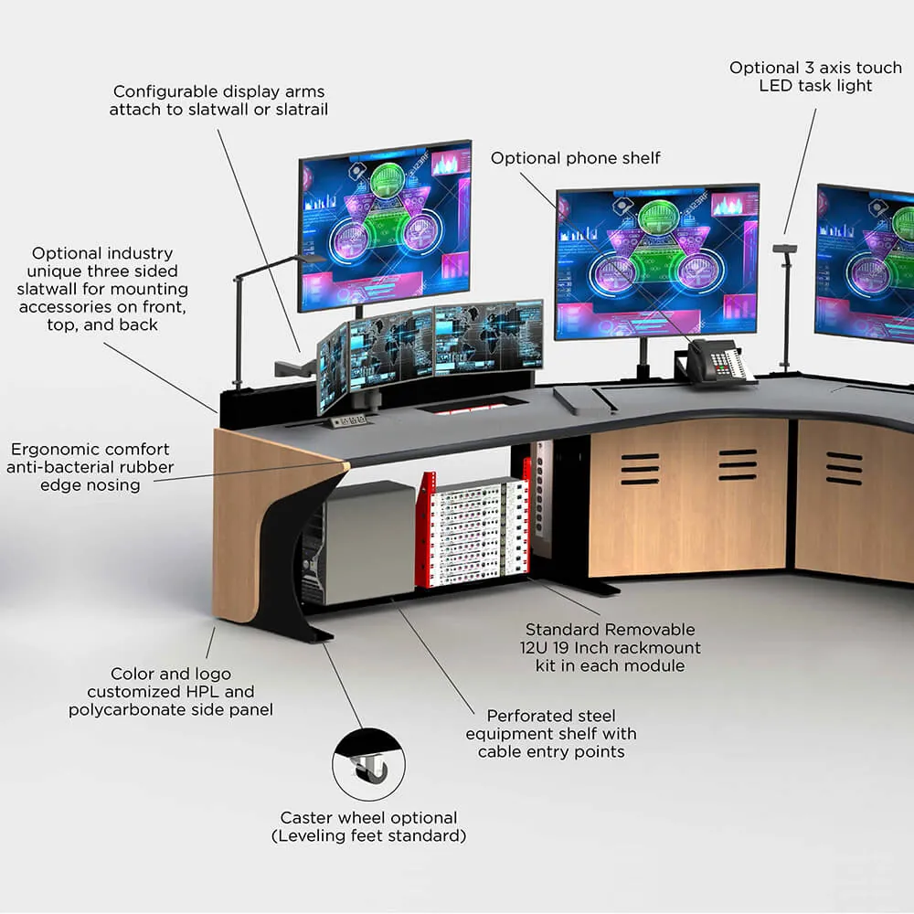 The control console pro static is expertly crafted to provide all the new cutting edge modular ergonomic features required for 7x24 network operations centers, control rooms, and command console applications. It has been strategically engineered to offer all this functionality at a price point that fits your budget.