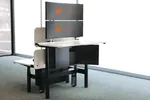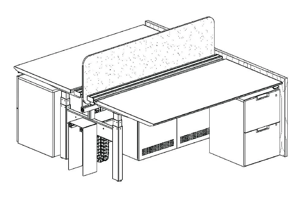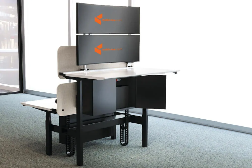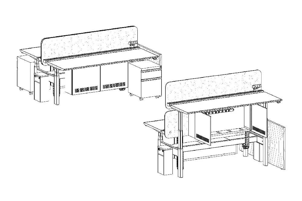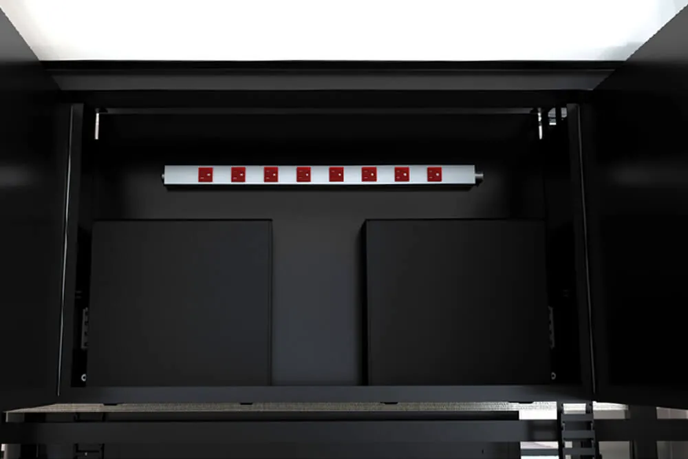 Going one step further from height adjustable workstation Max Range is designed & engineered to meet the needs of offices that require CPU storage cabinets along with advanced electrical and cable management. Its streamlined simplicity makes it suitable for use as a modular office desk, trading desk, or control room desk. Advanced height adjustable mechanism with ultra quiet operation and soft start/stop technology is enhanced with elevated CPU IT compartment that goes up and down along with the station’s worksurface.