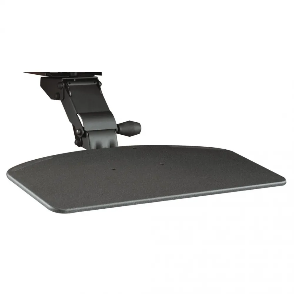 This articulating keyboard tray mounts underneath your desktop to hold both your keyboard and mouse. Retracts when not in use and adjusts in tilt, height and swivels to suit your needs. Designed to work specifically with this collection of office cubicals, but may also work on other desks.