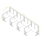 This configuration includes four L-shaped workstations (in a row) surrounded by 47'H and 67”H cubicle walls partitions for solitude as indicated.