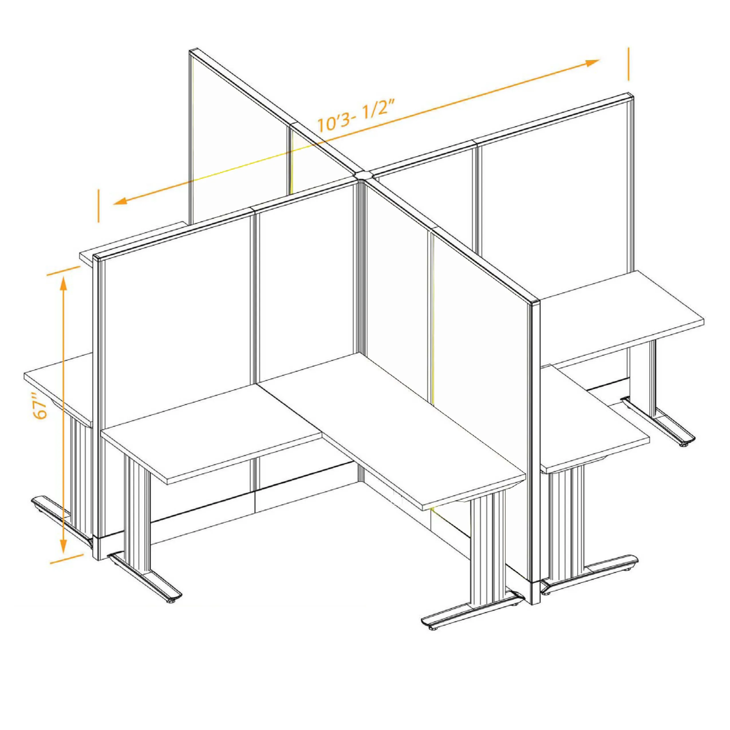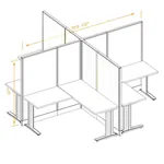 This configuration includes 4 L-shaped workstations surrounded by 67”H cubicle walls partitions for solitude as indicated.