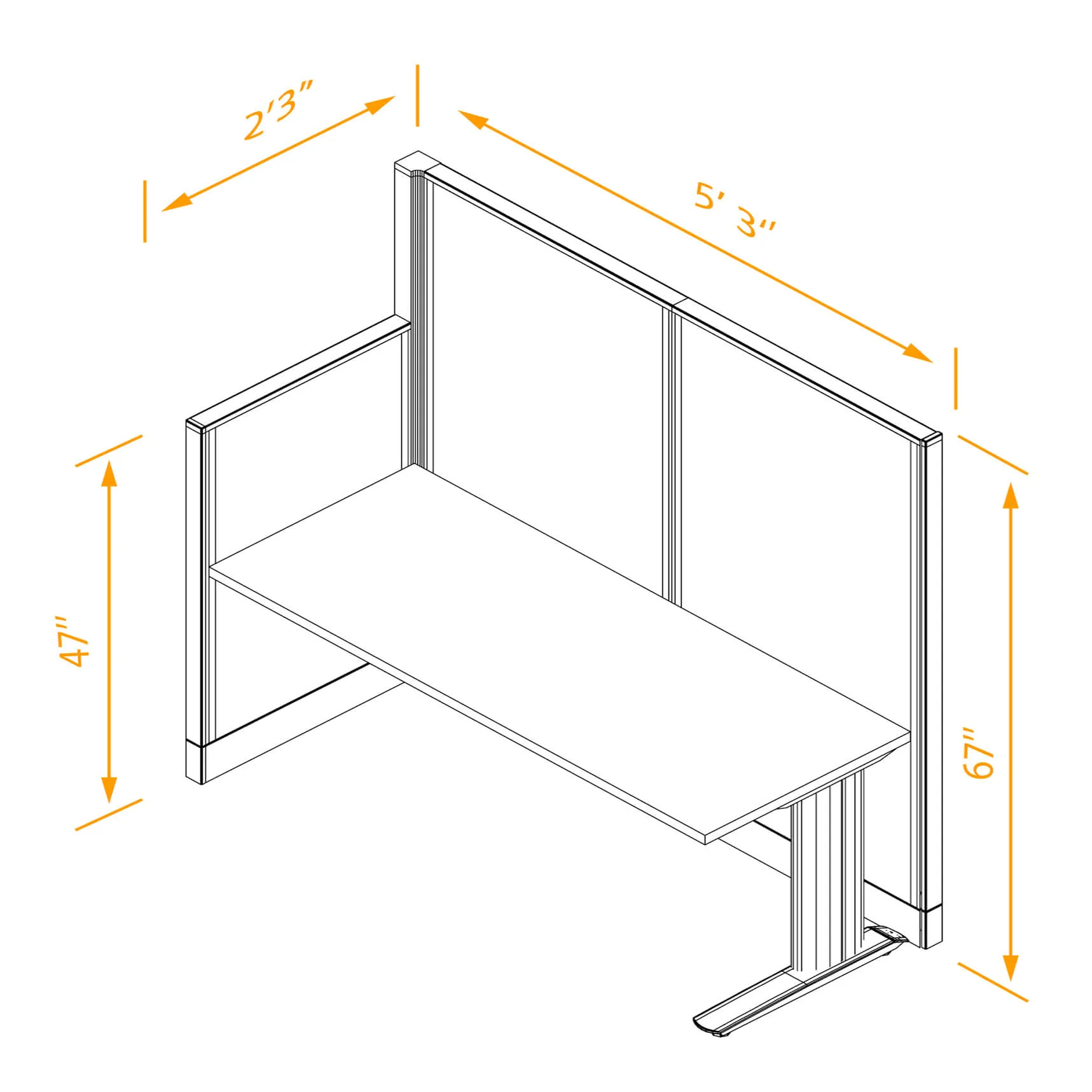 This configuration includes a linear workstation surrounded by a 47'H and 67”H cubicle walls partitions for solitude as indicated.