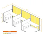 The majority of this collection's cubicles have in themselves two heights panels: 47" and 67", except for the X Cluster version which has all its panels 67" height.