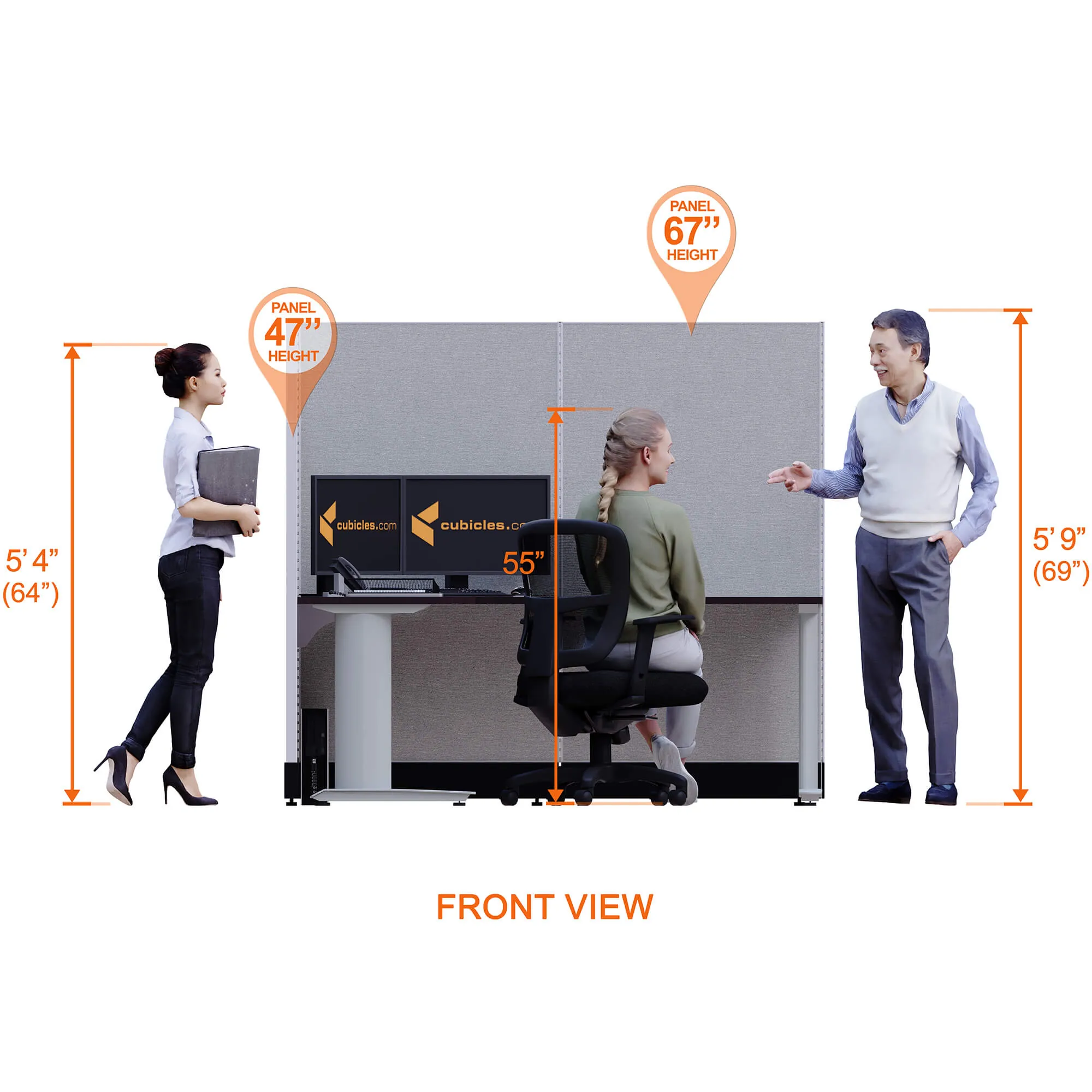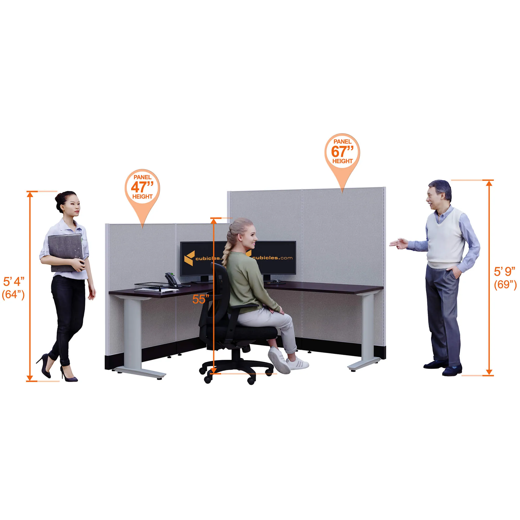 The majority of this collection's cubicles have in themselves two heights panels: 47" and 67", except for the X Cluster version which has all its panels 67" height.