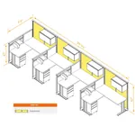 This configuration includes 4 L-shaped workstations (in a row) with storage, surrounded by 47'H and 67”H cubicle walls partitions for solitude as indicated.