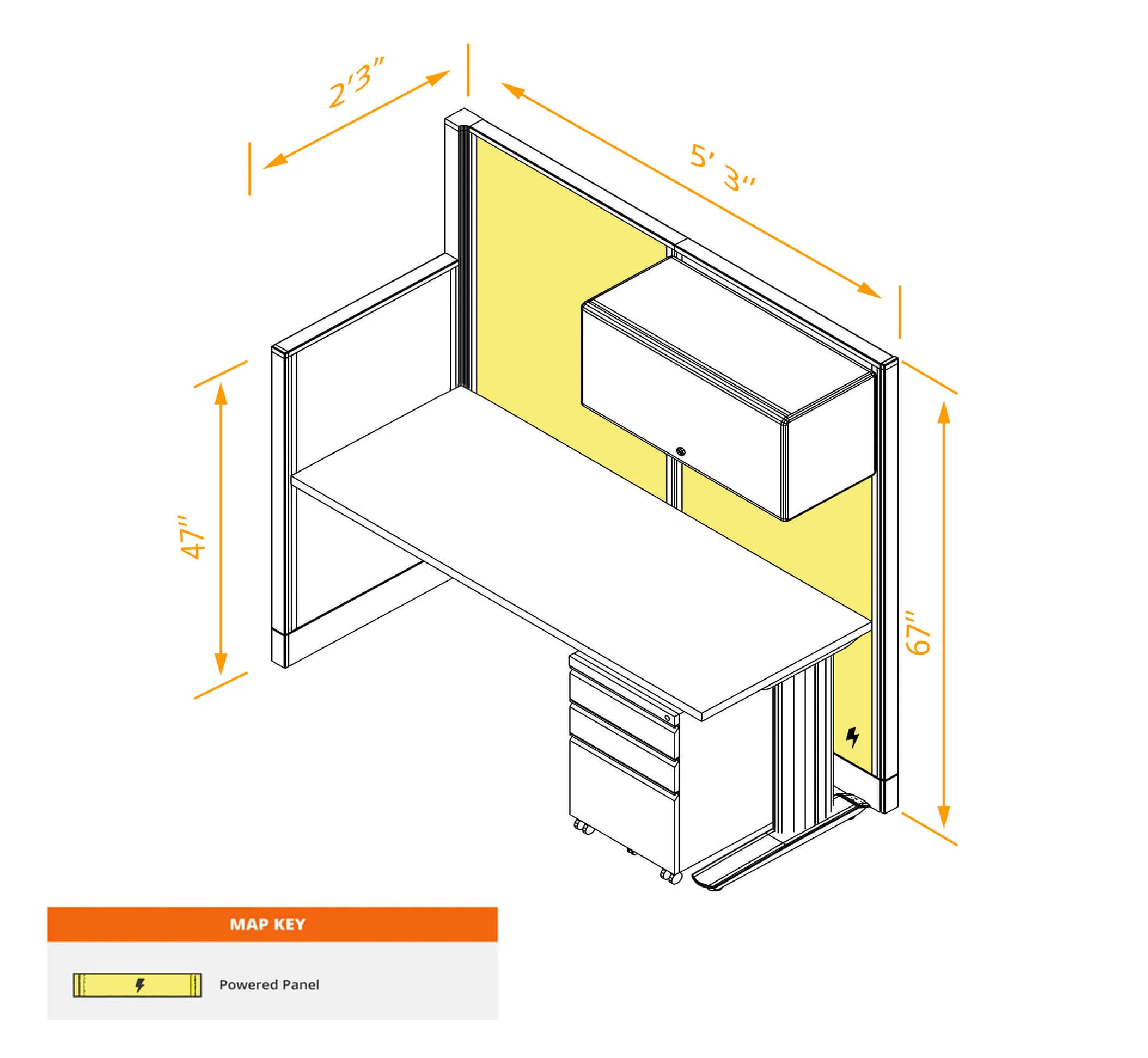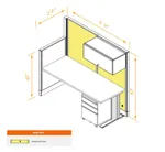 This configuration includes a linear workstation with storage in a singular arrangement, surrounded by a 47'H and 67”H cubicle walls partitions for solitude as indicated.