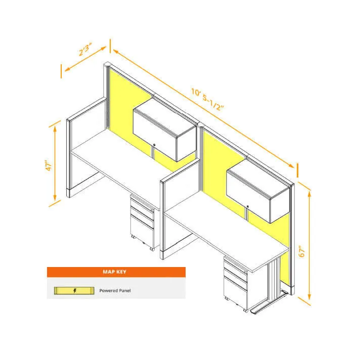Cubicle Desk Straight with Storage 2pack Powered