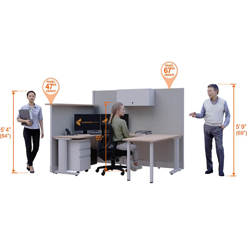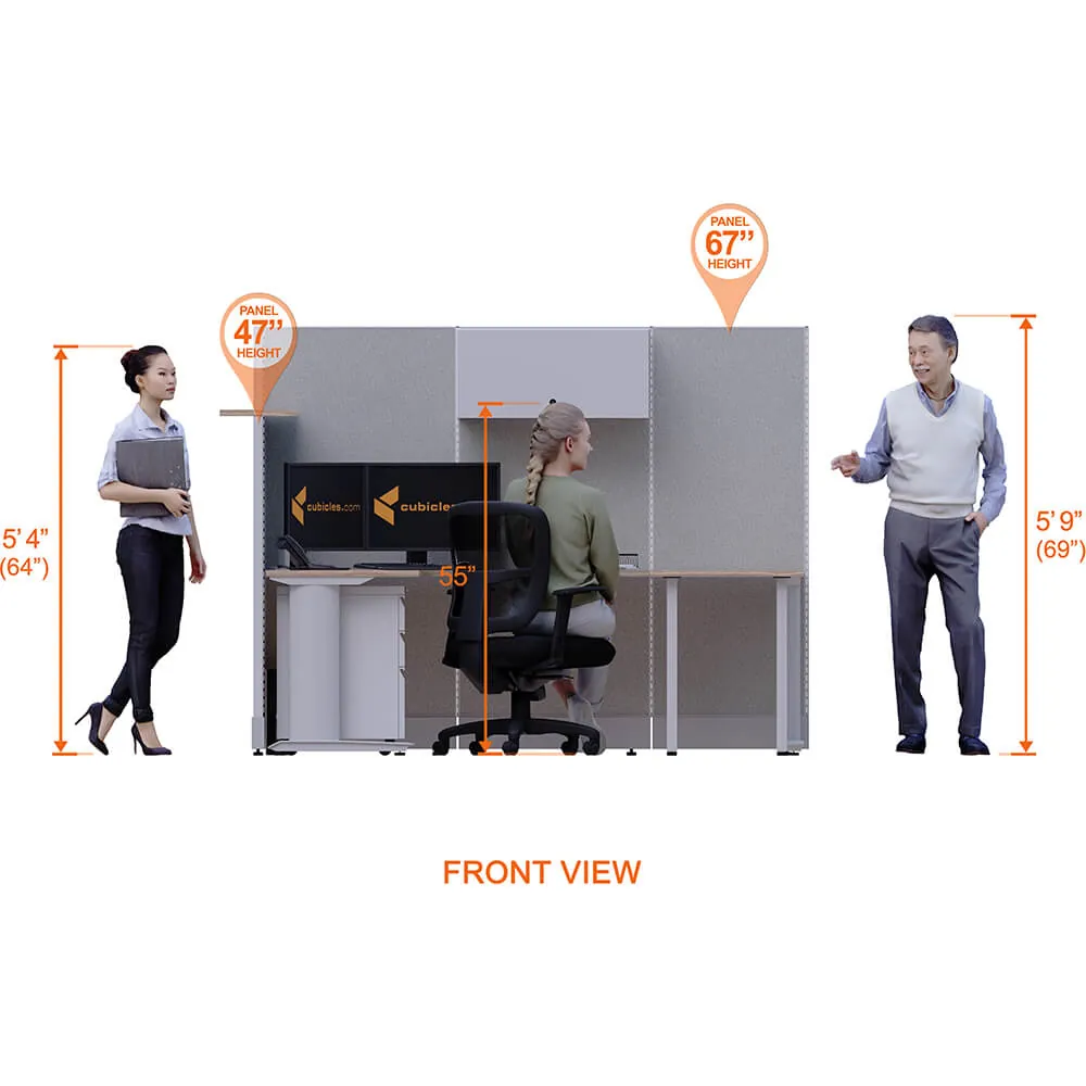 The majority of this collection's cubicles have in themselves two heights panels: 47" and 67", except for the X Cluster version which has all its panels 67" height.