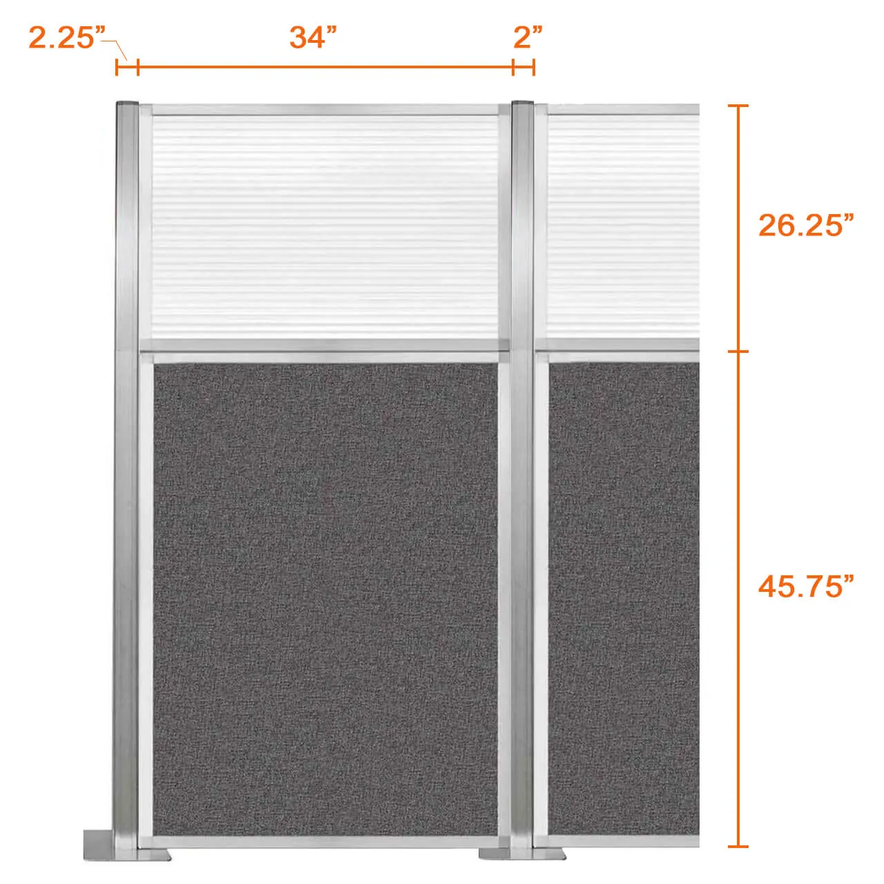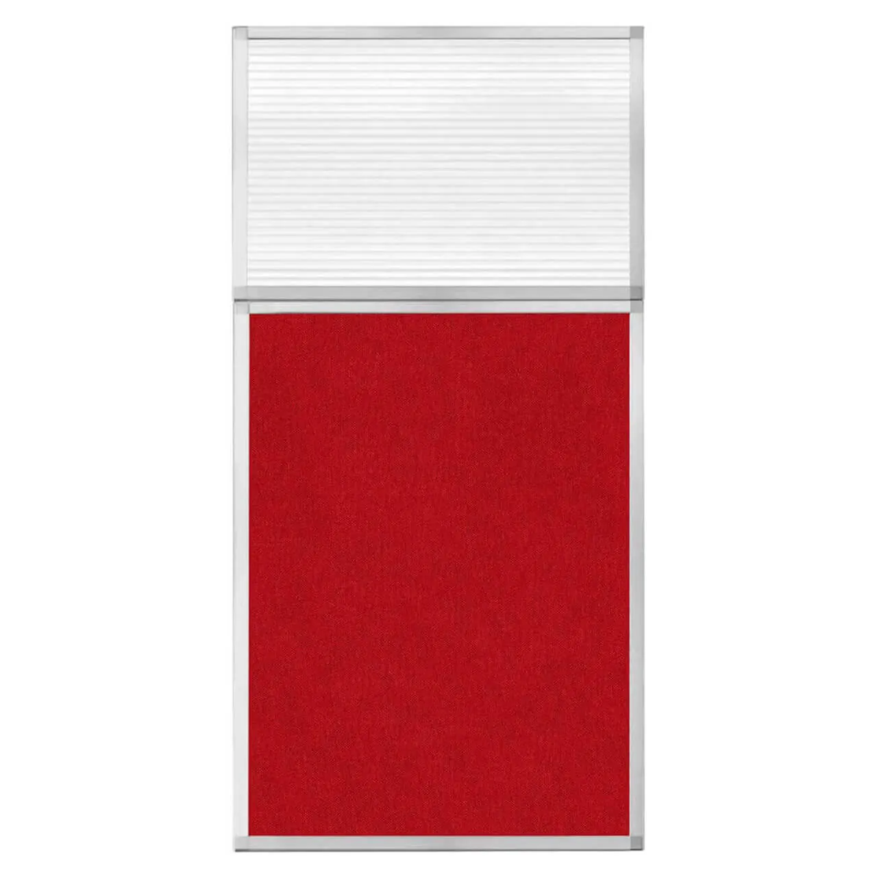 The acoustical fabric of these panel room dividers come in the following variants: Beige, Black, Navy Blue, Charcoal Gray, Red, Lime Green and Cerulean. While the core of the panels is of fiberglass to enhance sound-dampening capabilities. The window is of clear fluted polycarbonate and the frame and the posts are of anodized aluminum.