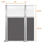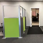 These modular panels are lightweight, durable, sound-dampening, and, the fabric, tackable. They also accept hooks, where you can hang posters, artwork and even flat screens. The window allows light entrance and the posts, which come with integrated feet, are attachable on all 4 sides.