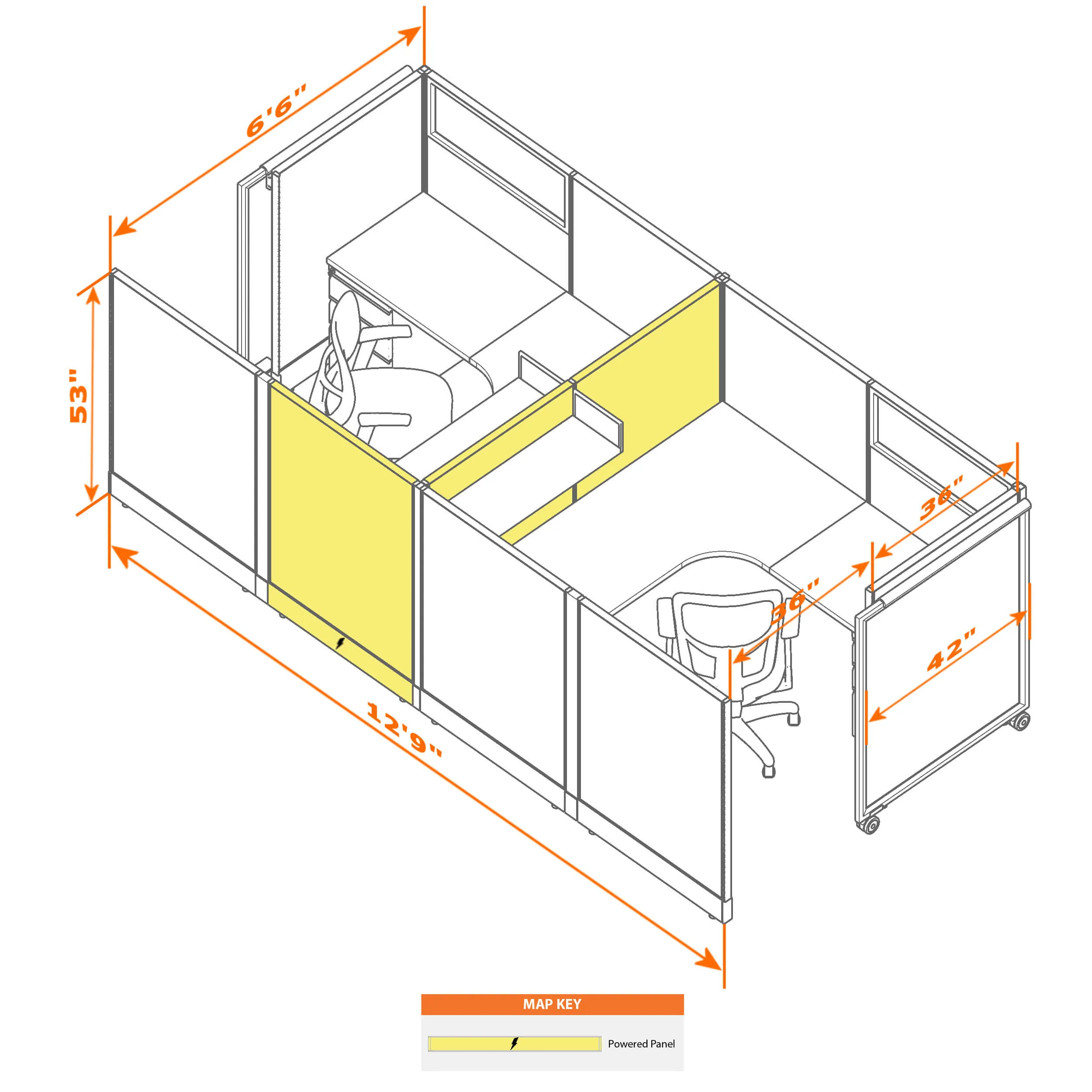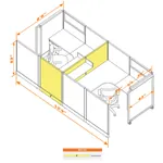 Cubicles with Sliding Doors 53H 2pack Cluster