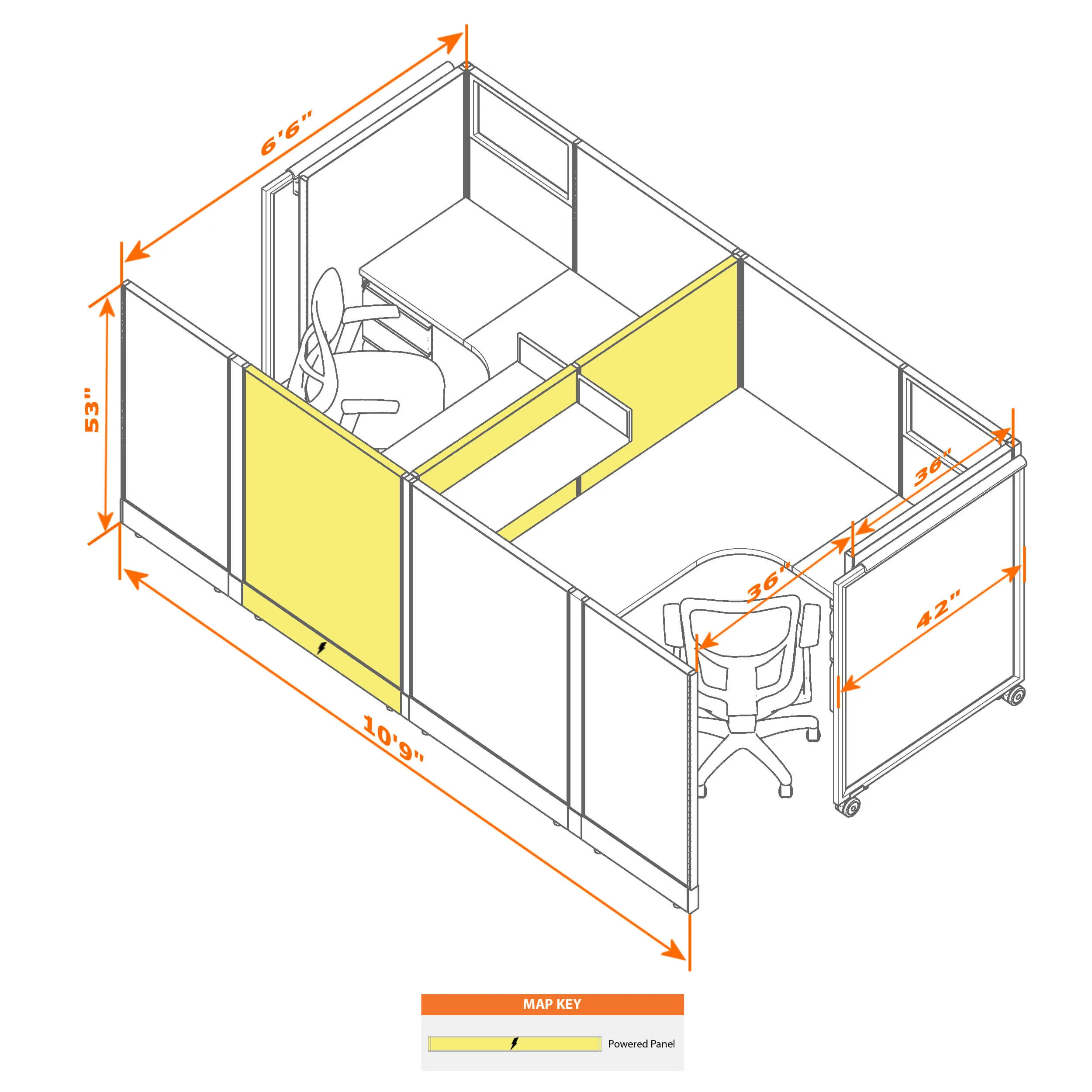 The standard options provided here offer the best pricing and fastest shipping for private office cubicles with doors. Customizations are available upon request and subject to minimum quantities, plus added production time & cost. Seating sold separately.