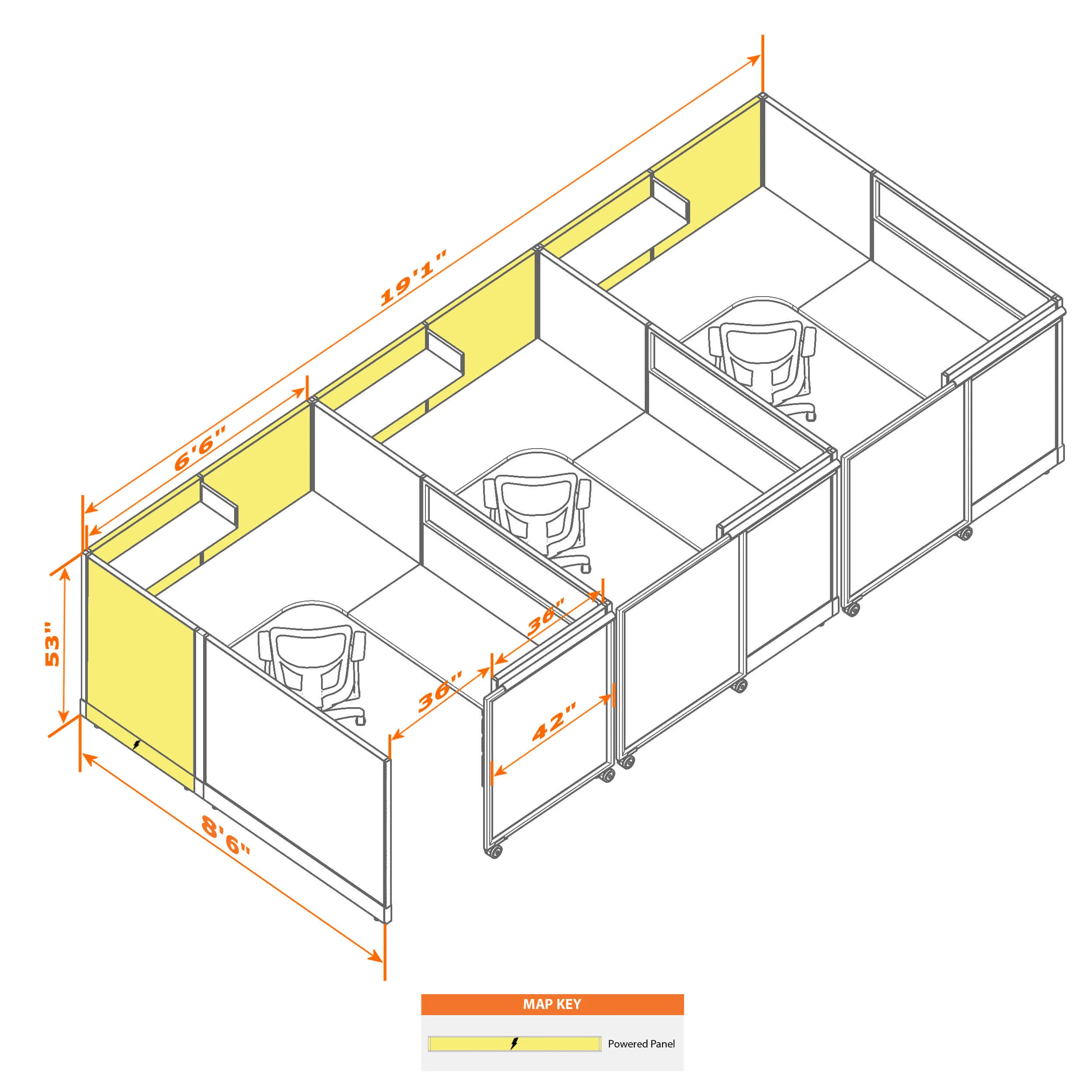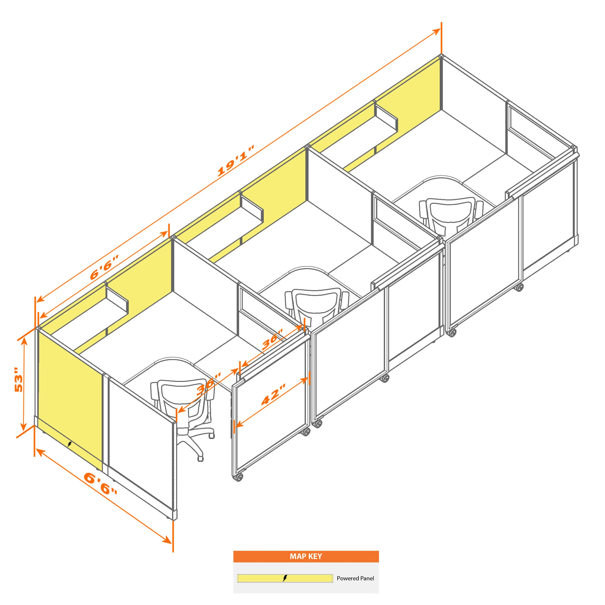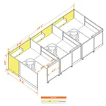 Cubicles with Sliding Doors 53H 3pack Inline
