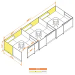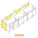 This configuration includes 3 L-shaped workstation with storage in a singular arrangement, enclosed by 53”H cubicle walls and a sliding door partition that grant moderate privacy. Want higher? Go with 67”H.