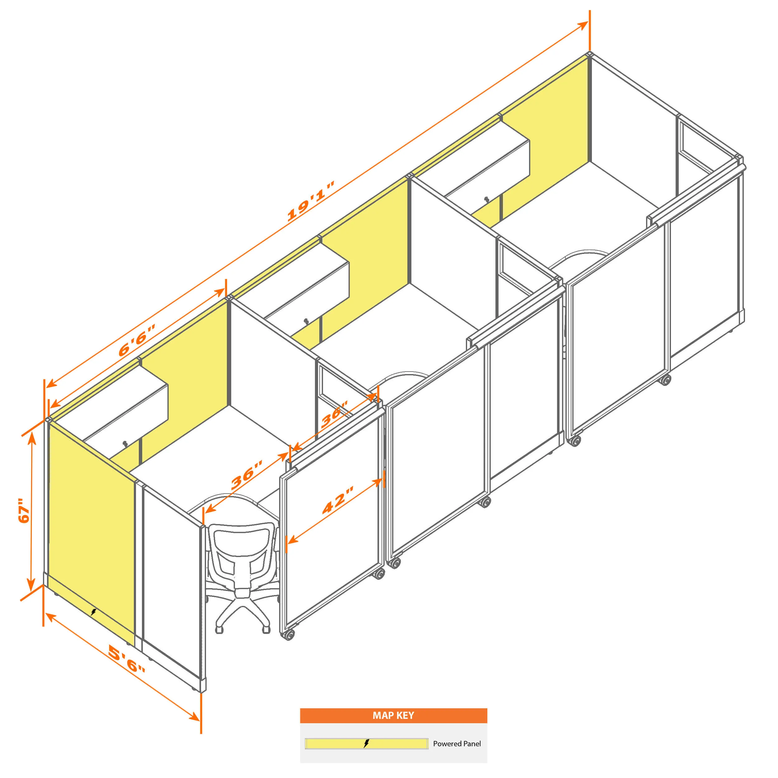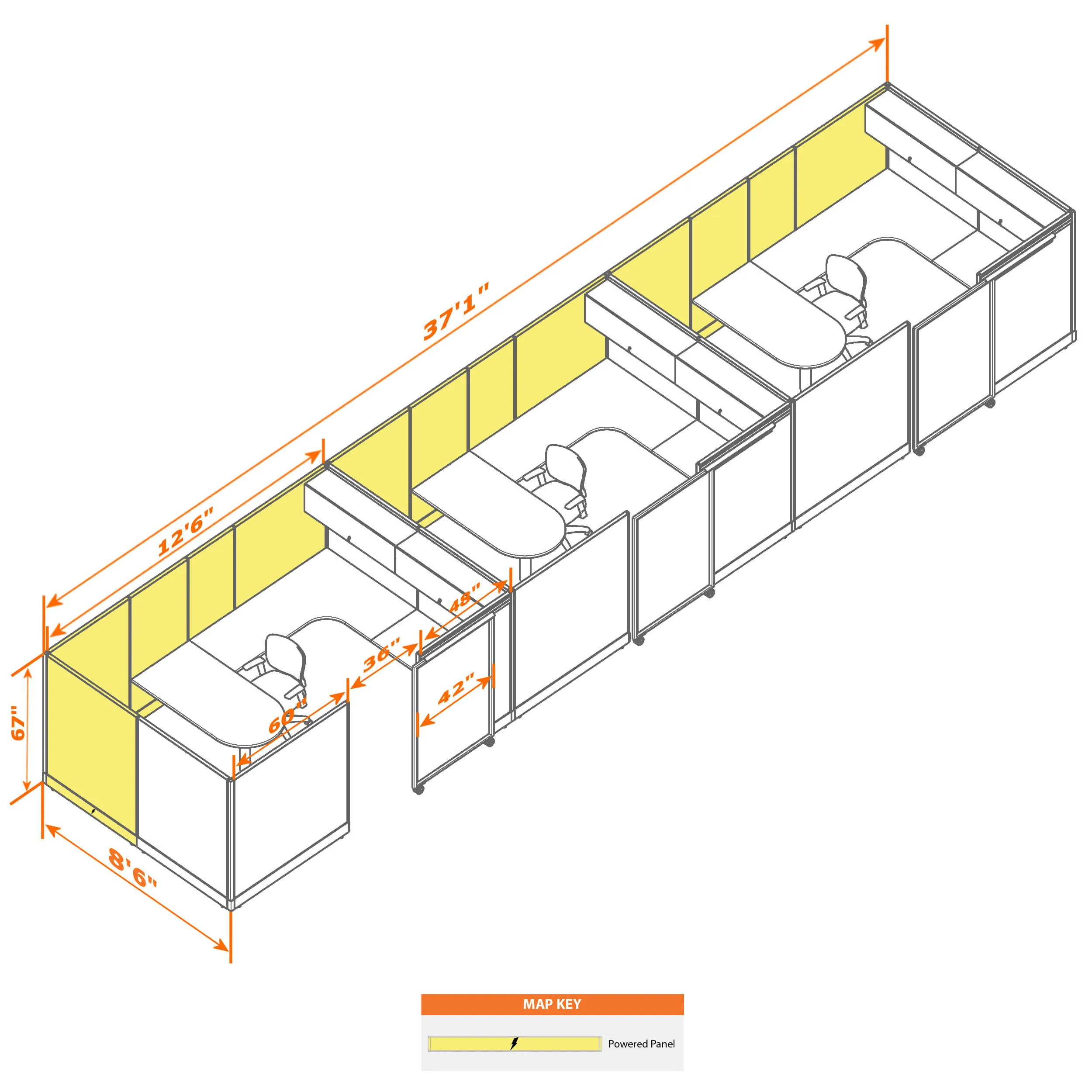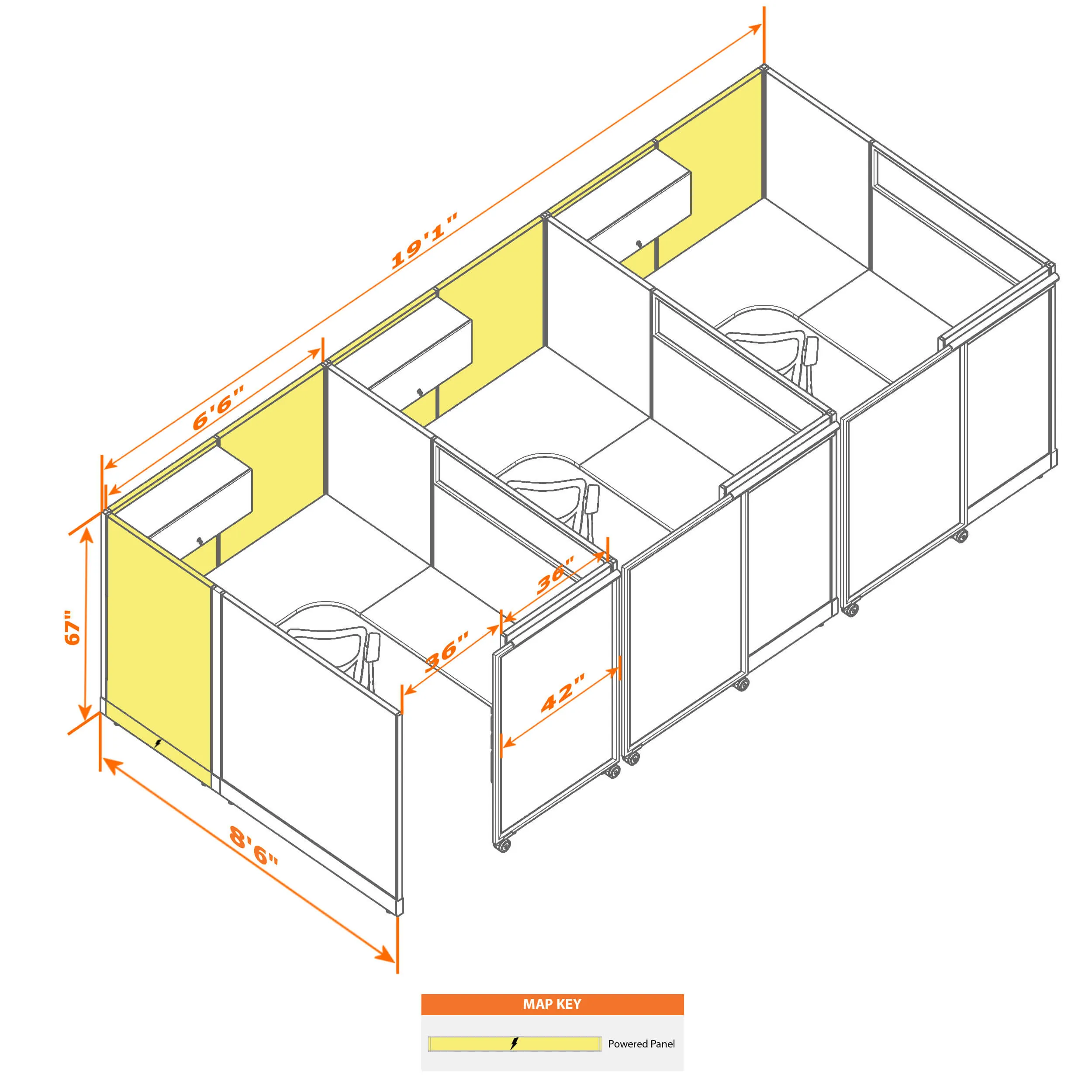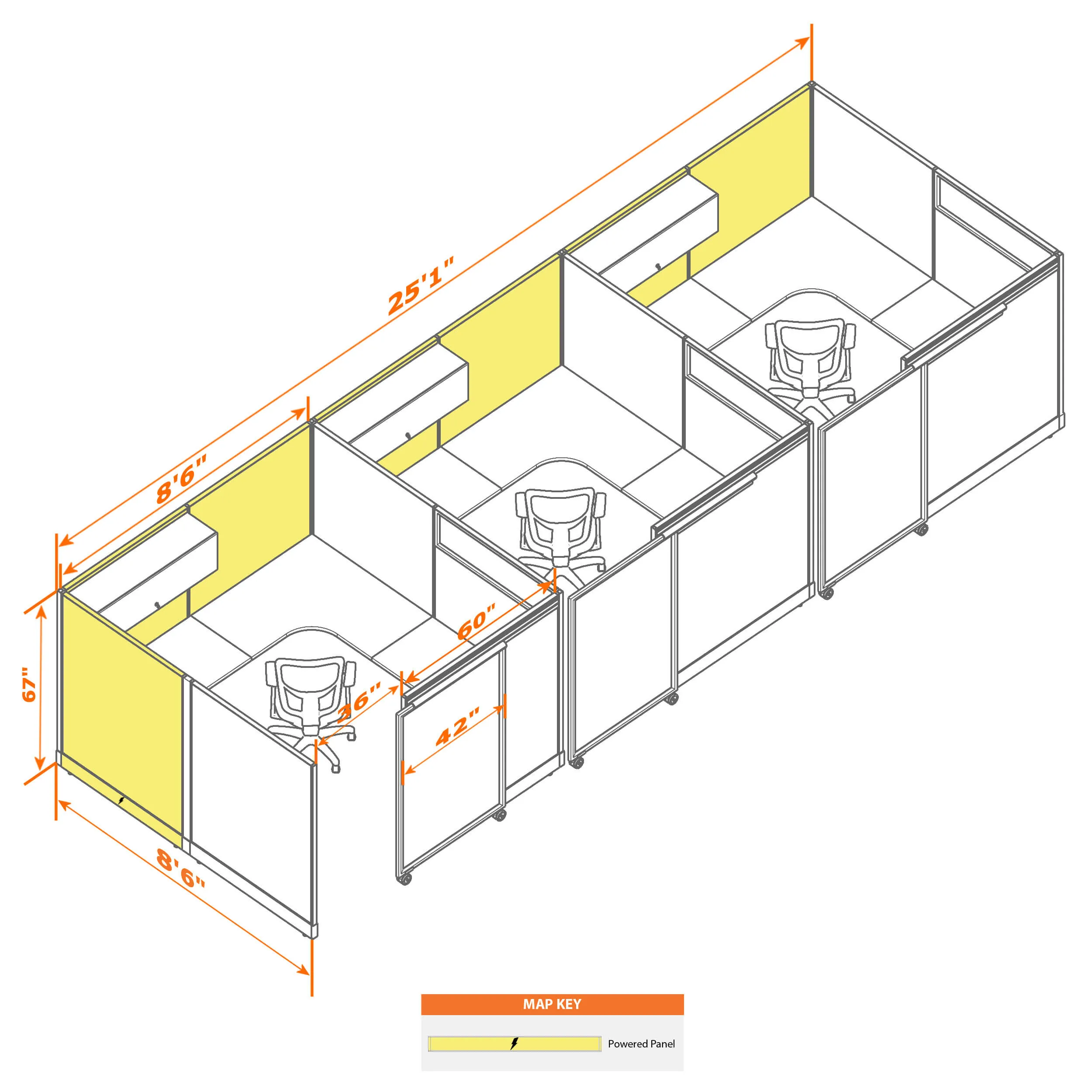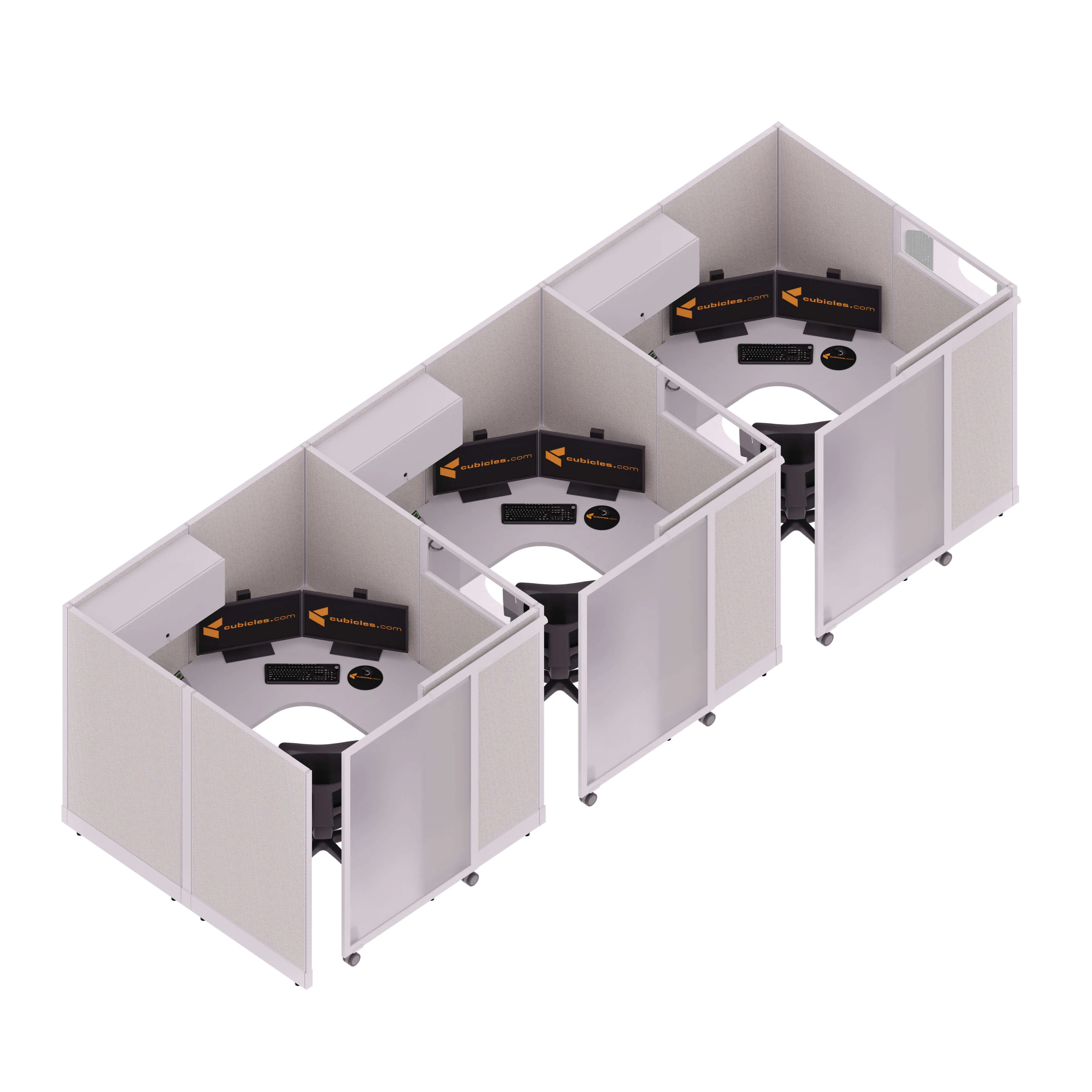 Cubicle with Sliding Door 67H 3pack Inline