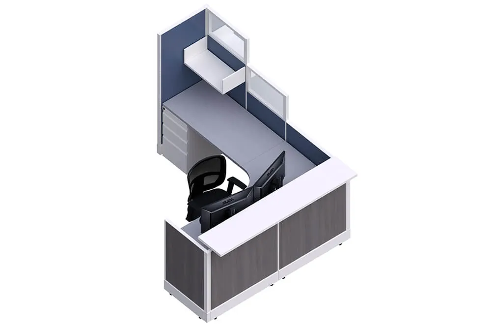 Elevate your office's first impression with the Unique Reception Desk, a masterpiece in modern office reception desk design. This Reception Desk L Shaped design is crafted to enhance both privacy and functionality. Its distinctive reception desk glass partition tops feature a stepping height design, providing privacy for the receptionist while seamlessly lowering towards the transaction counter for easy visitor interaction. With its dynamic structure and clear glass panels, this desk exudes sophistication and professionalism, making it a perfect addition to any contemporary workspace.