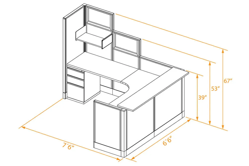 Designed for practicality, the desk boasts a spacious L-shaped worksurface, two integrated storage pedestals for keeping essentials at hand, and a convenient open shelf beneath the highest glass stacking panel. This thoughtful arrangement makes it not just a piece of reception desk furniture but a functional hub for daily tasks. Whether you're furnishing a sleek corporate lobby or a stylish boutique office, the Unique Reception Desk combines aesthetic appeal with purposeful design, ensuring your workspace leaves a lasting impression.