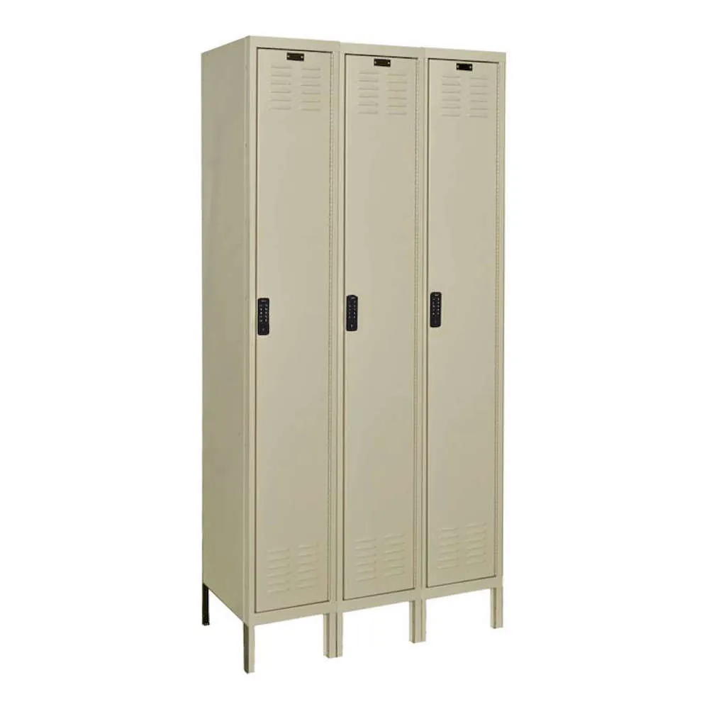 Modern storage options like these three wide / one tall electronic lockers use cutting edge technology to improve user administration, convenience, and security. Featuring an electronic 4-digit user PINlock system - they are frequently found in workplaces, educational institutions, fitness centers, hotels, airports, and other public and private locations that require efficient access control and secure storage.
