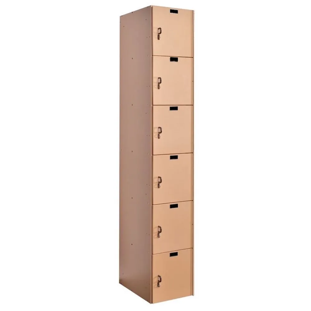 Our one wide / six tall plastic lockers are perfect for situations including a lot of wetness, excessive humidity, and water. Solid high-density polyethylene (HDPE) panels are used in the construction of plastic lockers to provide maximum strength and durability as well as corrosion resistance against the majority of common chemicals.