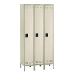 Secure Series industrial lockers are smartly engineered to give you an array of durable and flexible options to furnish your locker room area. Built with heavy gauge steel components, all units are built to last a lifetime. Vented lockable doors help keep personal belongings safe and secure, while also preventing the buildup of humidity or odors. The lockers sit on 6" legs, making it easy to keep the floors debris-free. This unit includes 3 tall locker compartments side by side, with an interior top shelf and a rail for hanging clothing or uniforms. You can opt to have the unit standalone, or join it to additional units with the same or different sized lockers depending on the nature of your facility and the needs of your users. This is also available as a single metal storage locker, instead of a bank of three.